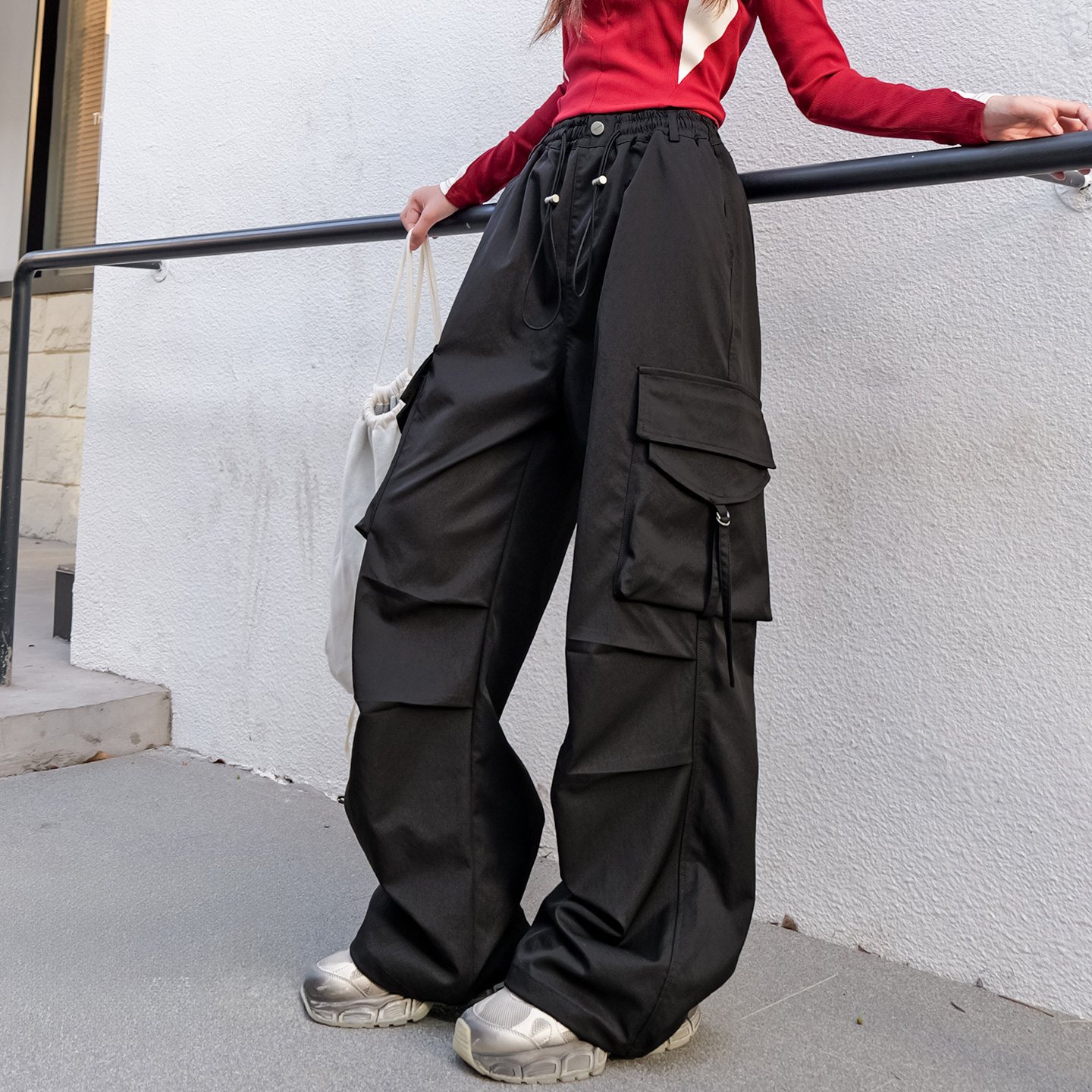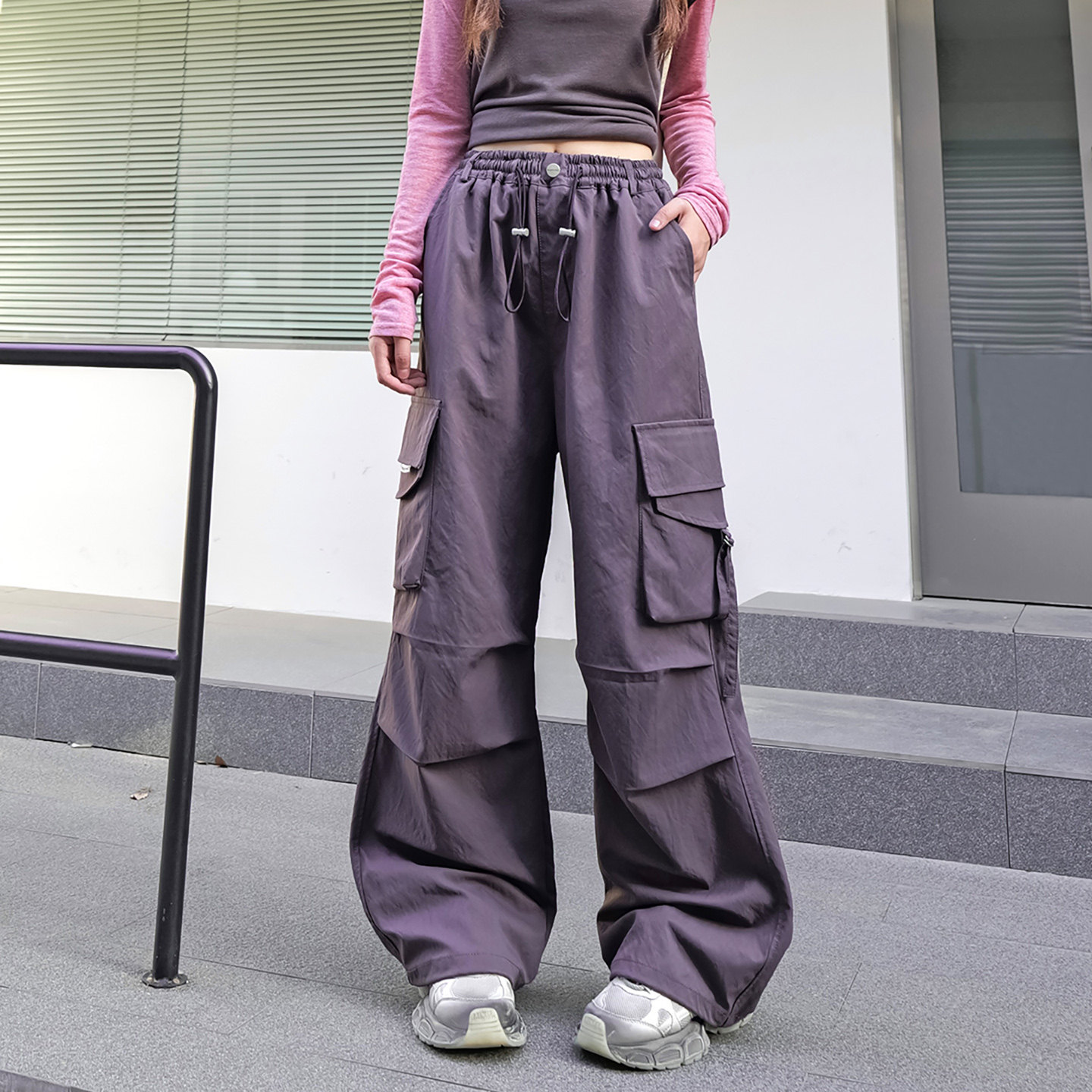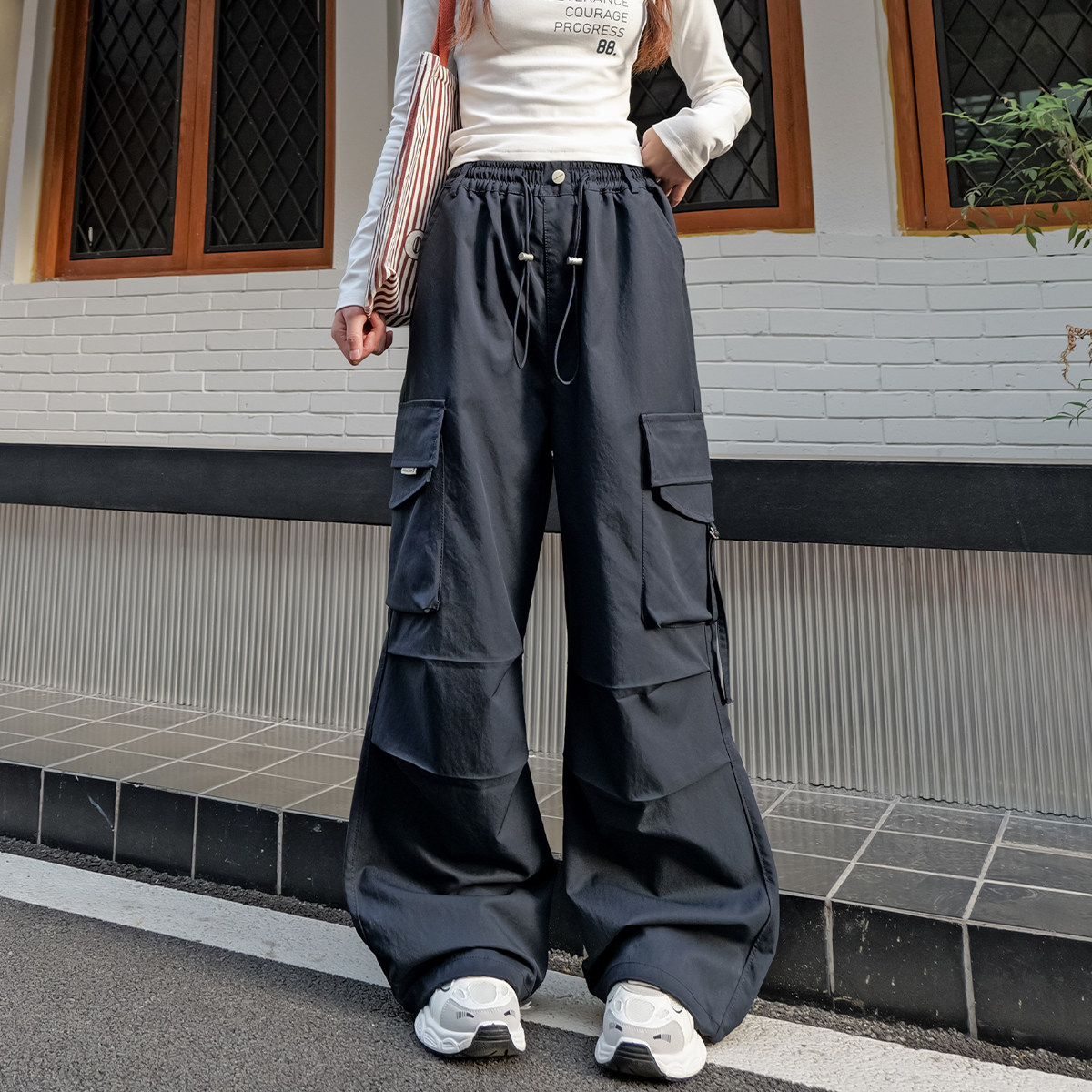 女大童工装裤春秋款2026新款裤子初中生女孩秋装宽松青少年伞兵裤