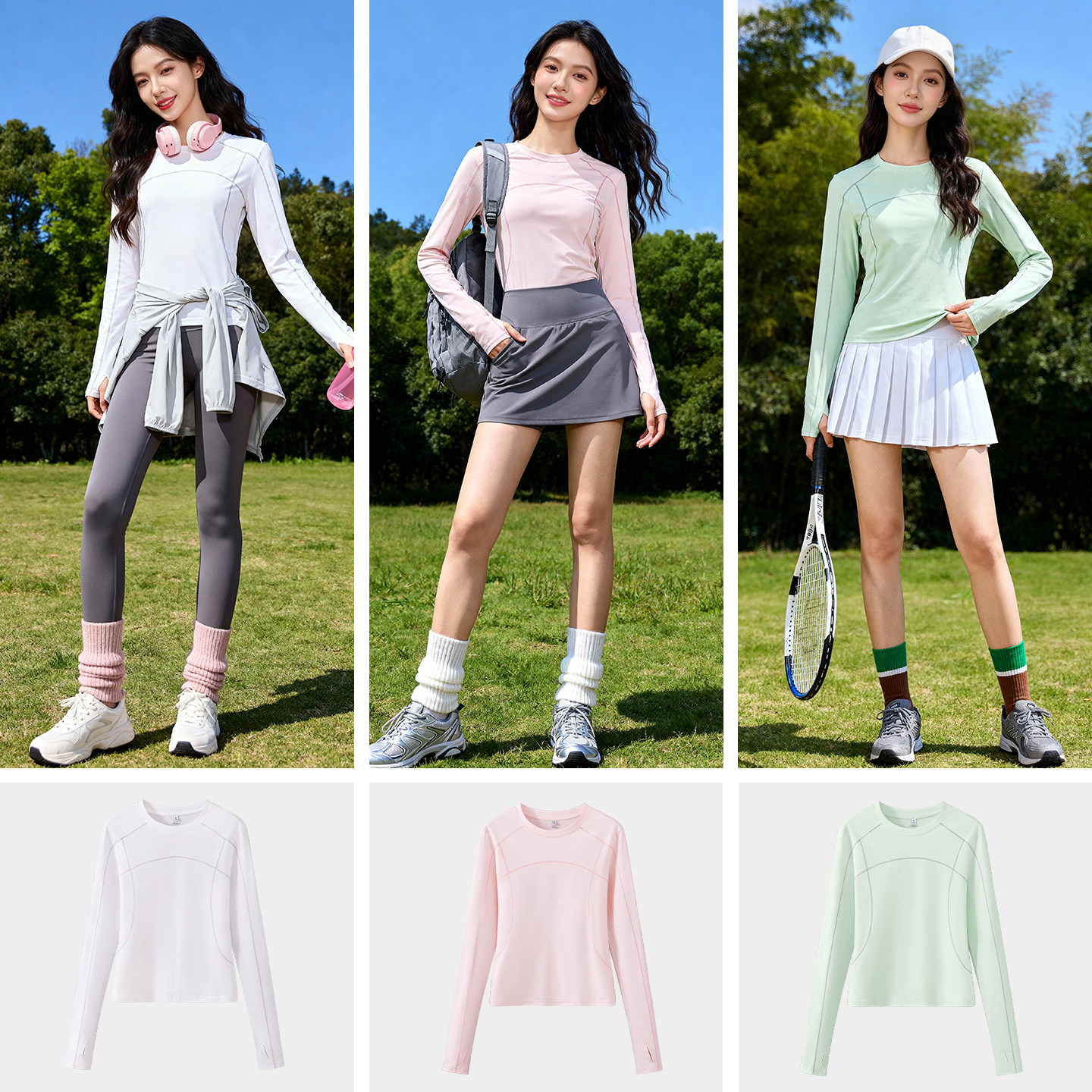 班尼路粉色速干长袖t恤女款夏季2026新款防晒健身瑜伽服运动上衣