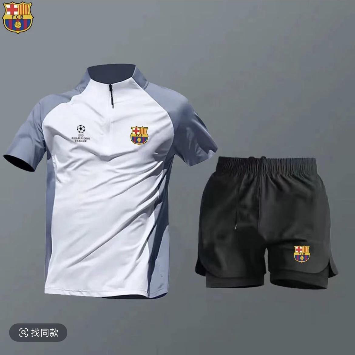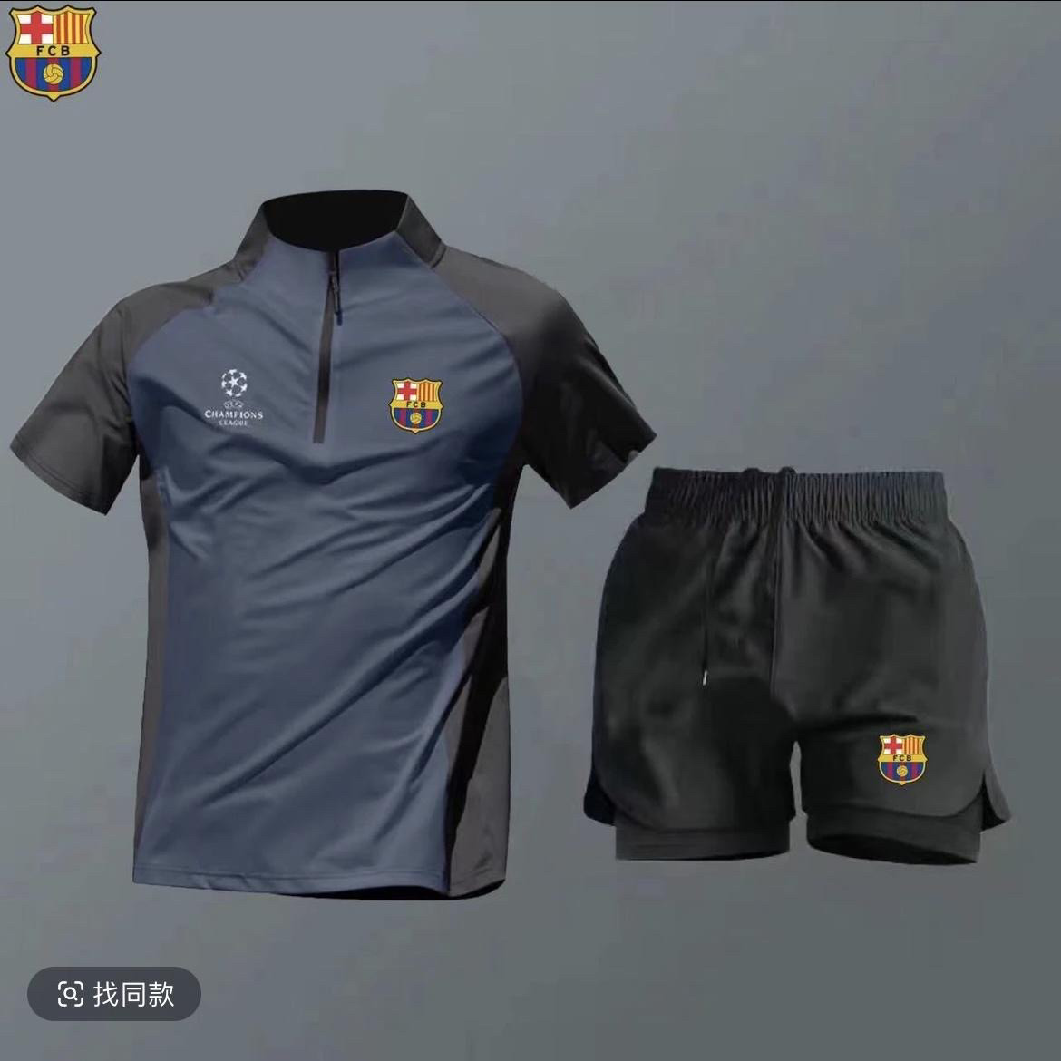 2526皇马欧冠足球服套装男夏季巴萨半拉链速干训练服短袖短裤球衣