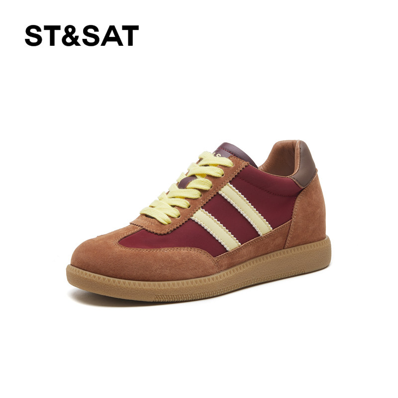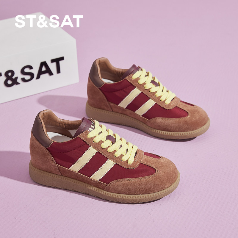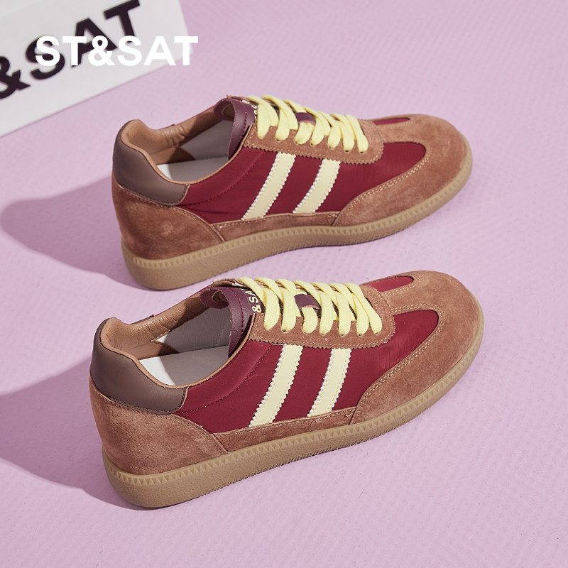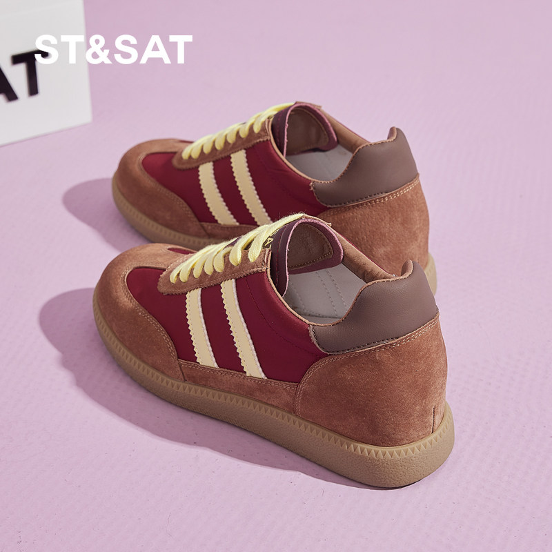 星期六官方正品女鞋新款6CM内增高轻软弹设计感复古德训鞋