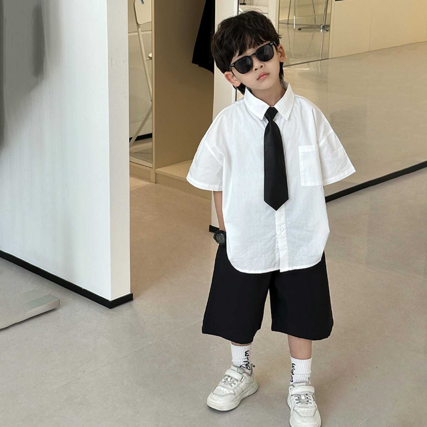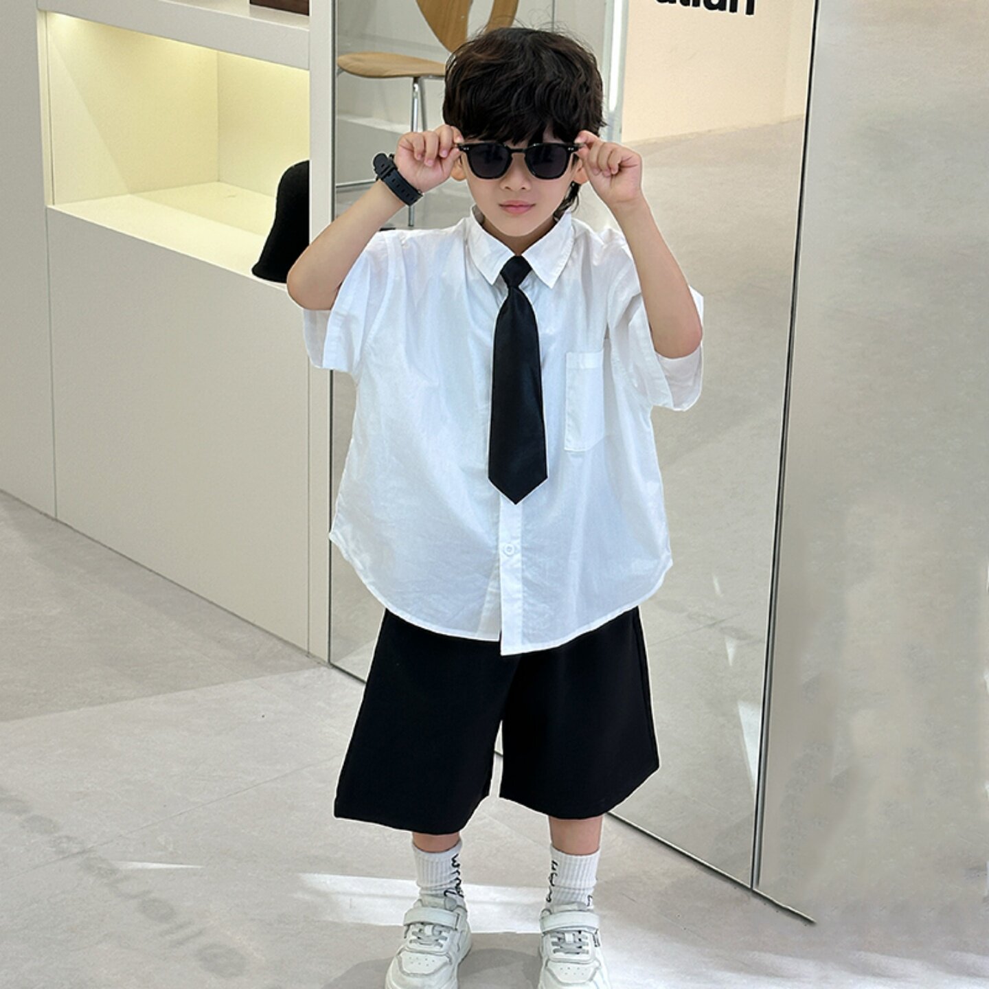 男童学院风领带衬衫套装2026新款夏季幼儿园六一儿童节短袖表演服