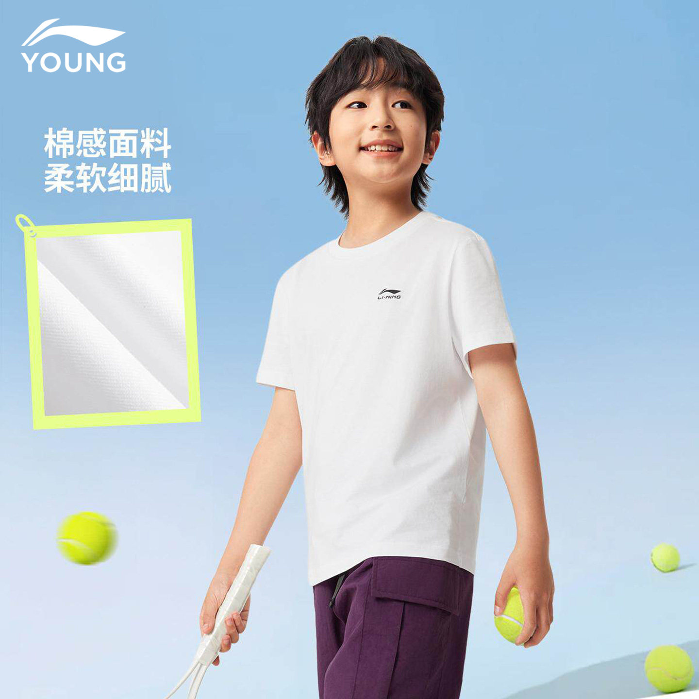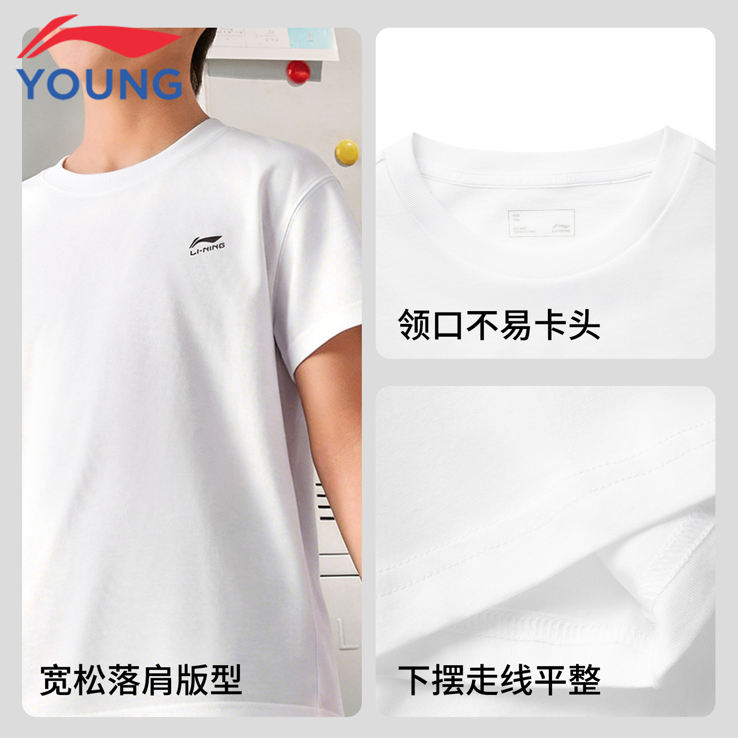李宁儿童纯棉短袖t恤男童大童2026夏季新款宽松吸汗透气白色半袖