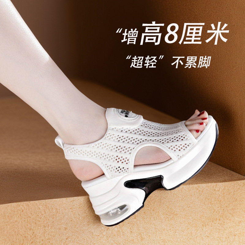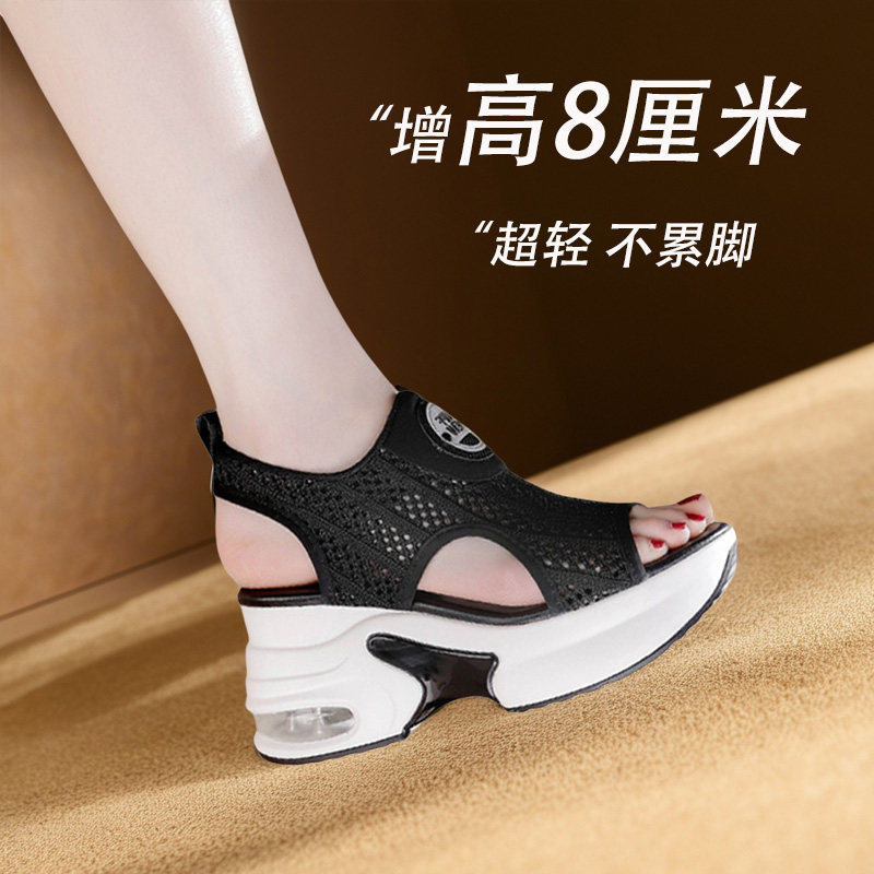 8cm内增高运动凉鞋女2026新款夏季小个子坡跟罗马女鞋软底不累脚