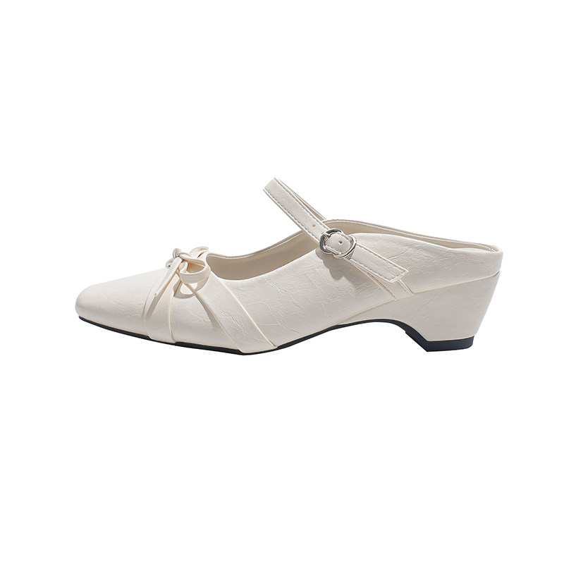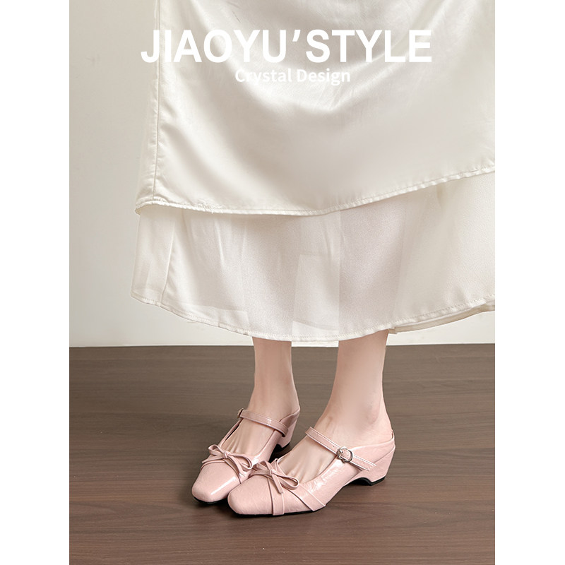 真皮~骄屿法式仙女包头半拖鞋女外穿2026新款内增高方头玛丽珍鞋
