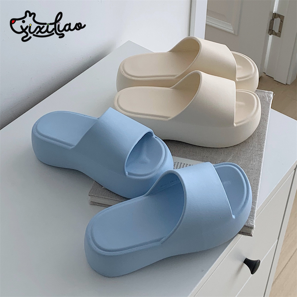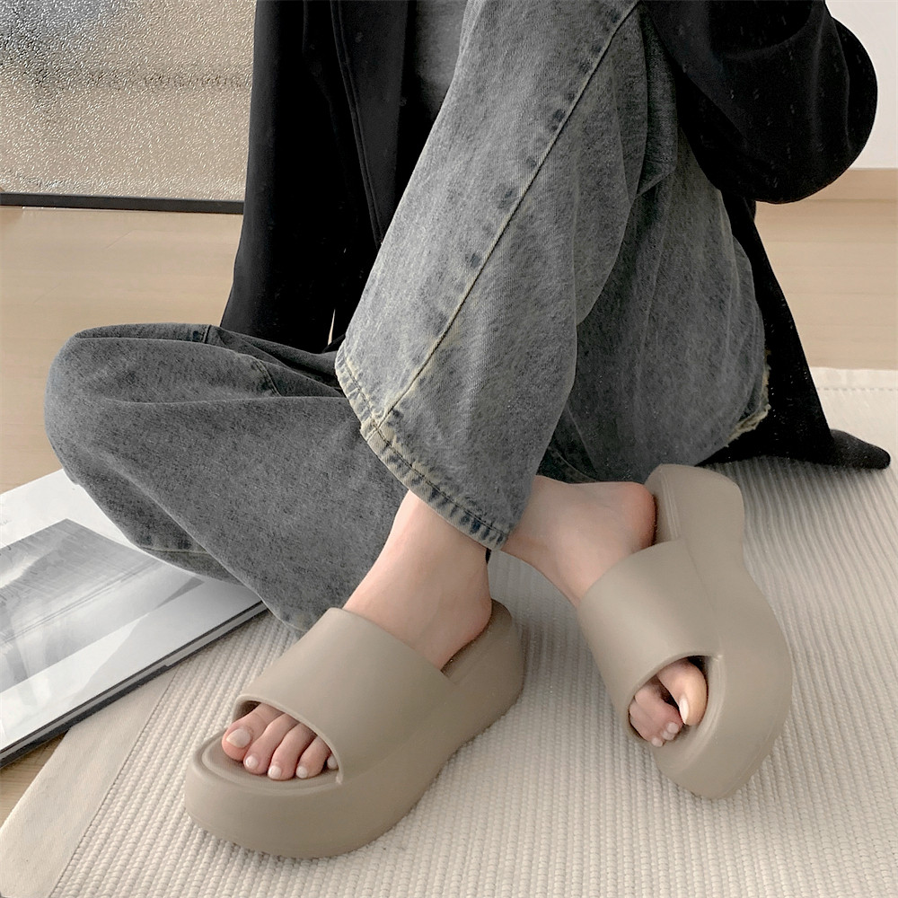 细细条 户外穿百搭防滑厚底增高拖鞋女夏季纯色海边度假沙滩凉拖