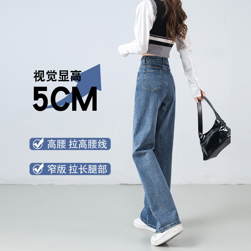 直筒牛仔裤女2026新款春季爆款小个子裤子高腰宽松显瘦窄版阔腿裤