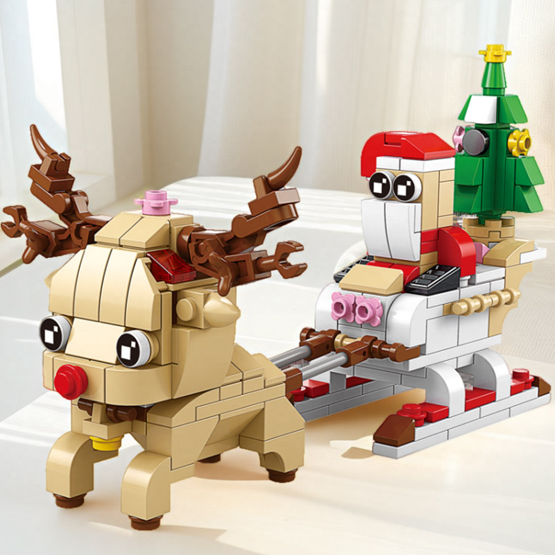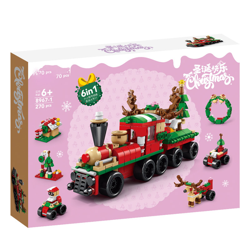 新款儿童圣诞小火车拼装积木玩具男孩汽车模型6男童礼物8一10岁
