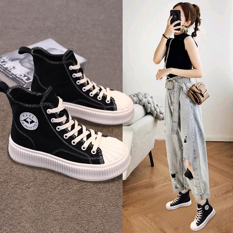 高帮帆布鞋女款球鞋休闲鞋百搭小白鞋显瘦鞋子增高女鞋透气板鞋女