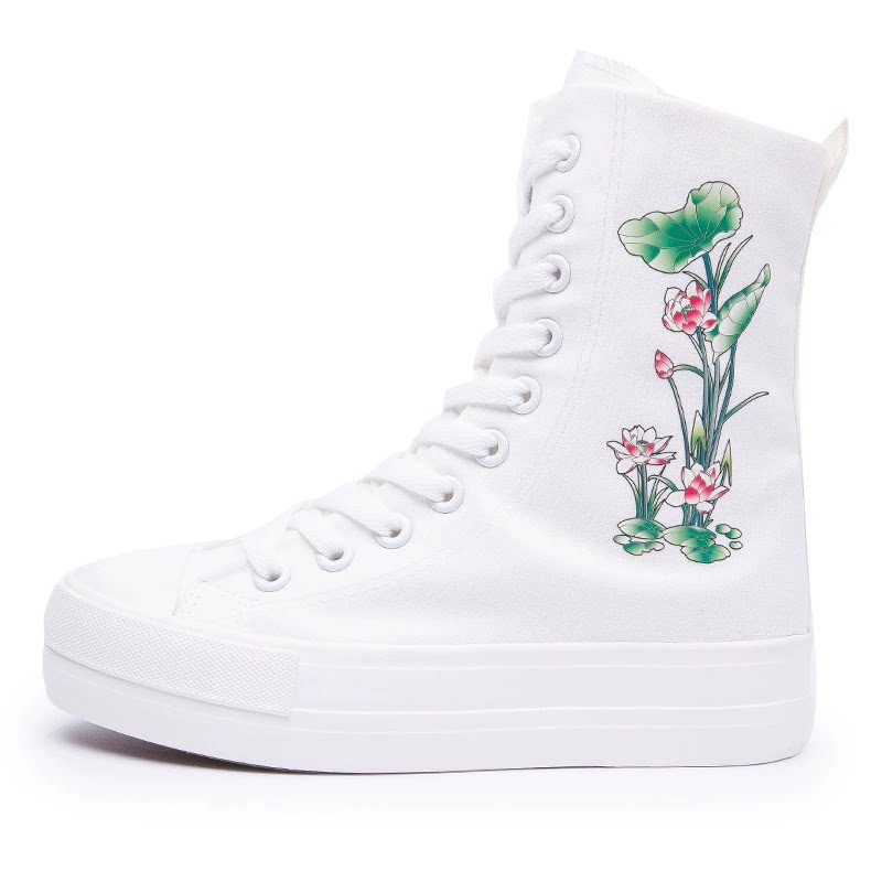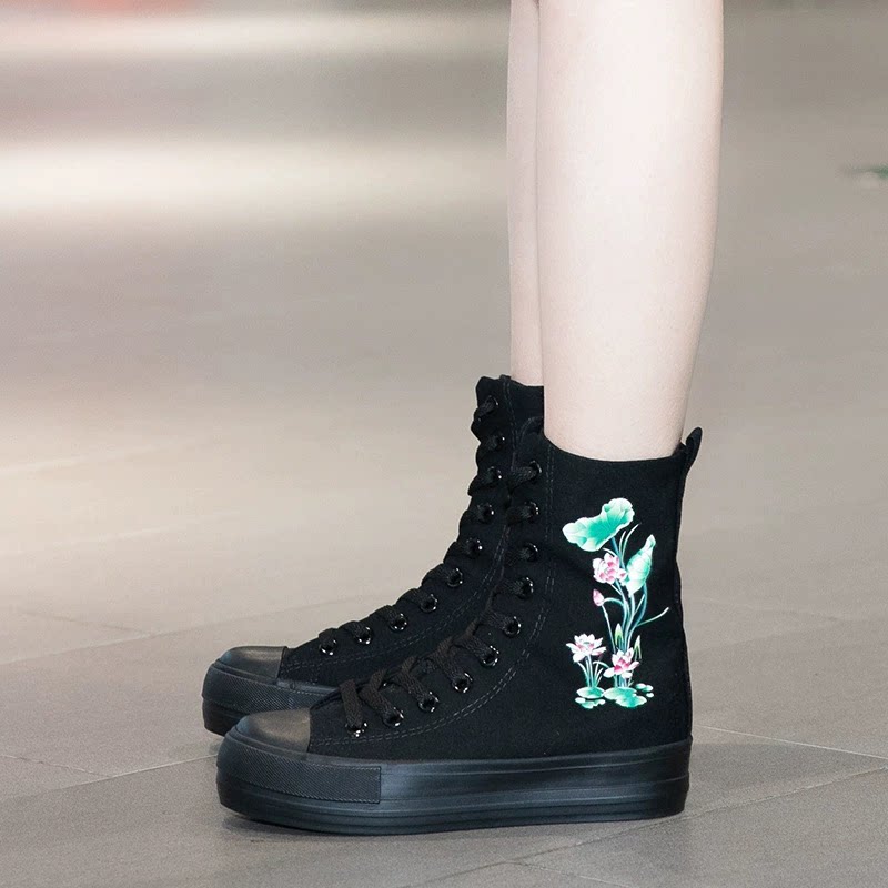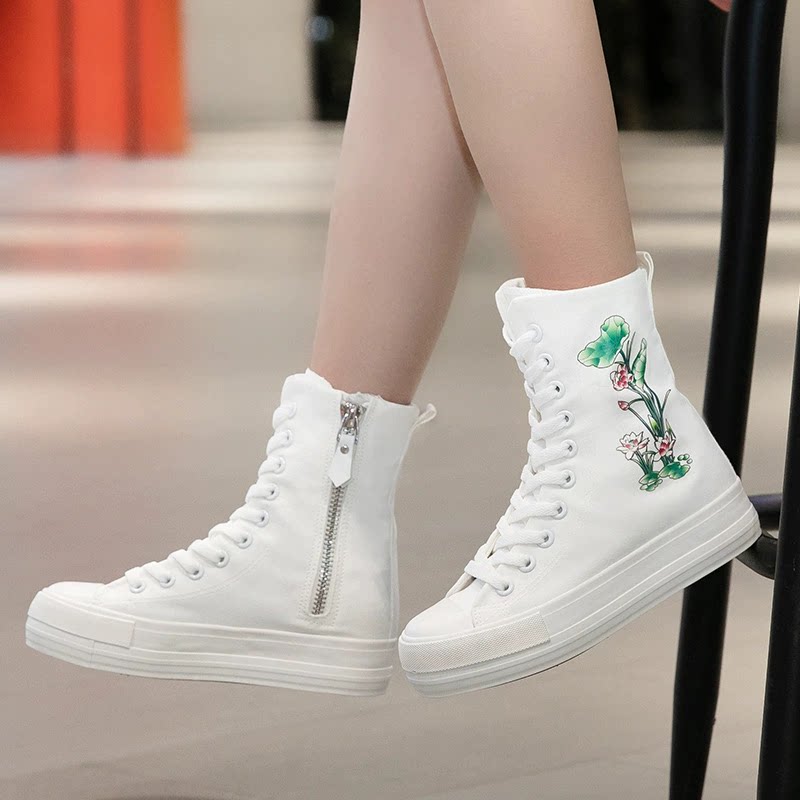 新款女鞋白色帆布鞋高帮女款休闲鞋子百搭厚底球鞋小白鞋增高板鞋