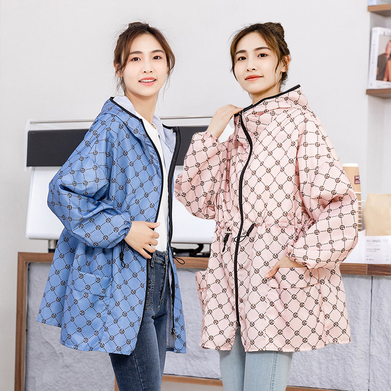 薄款防风防尘长袖外套连帽围裙收腰显瘦罩衣工作服厨房家用女成人
