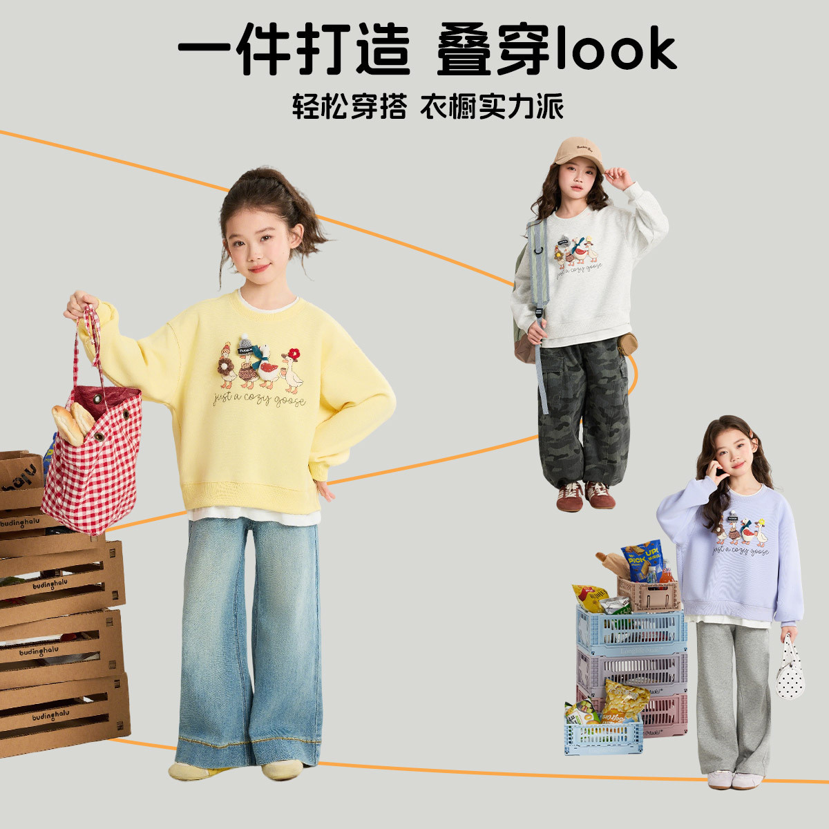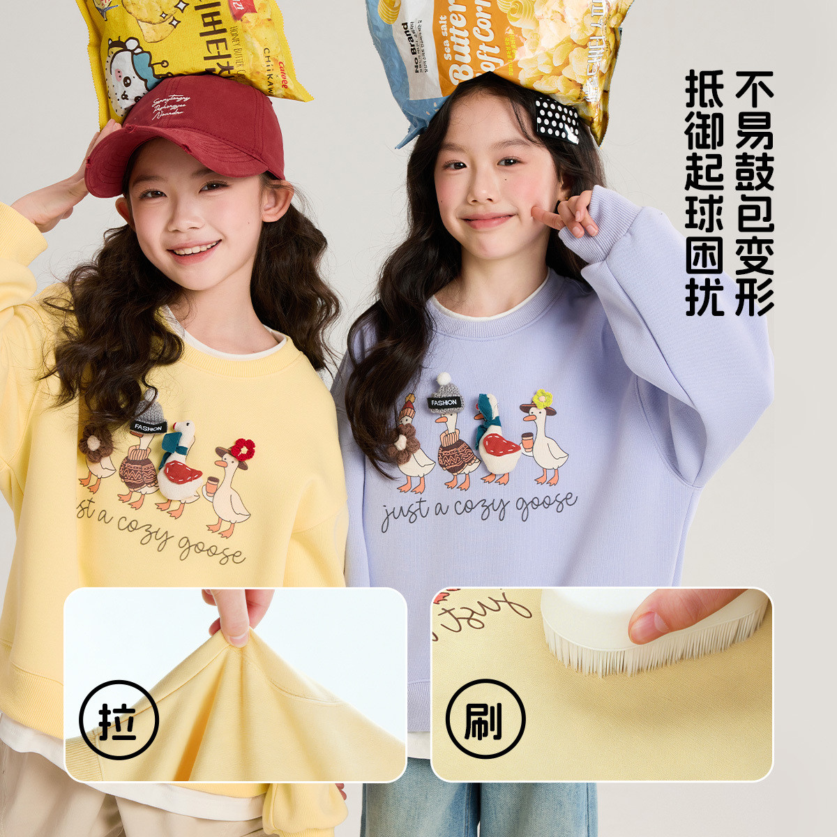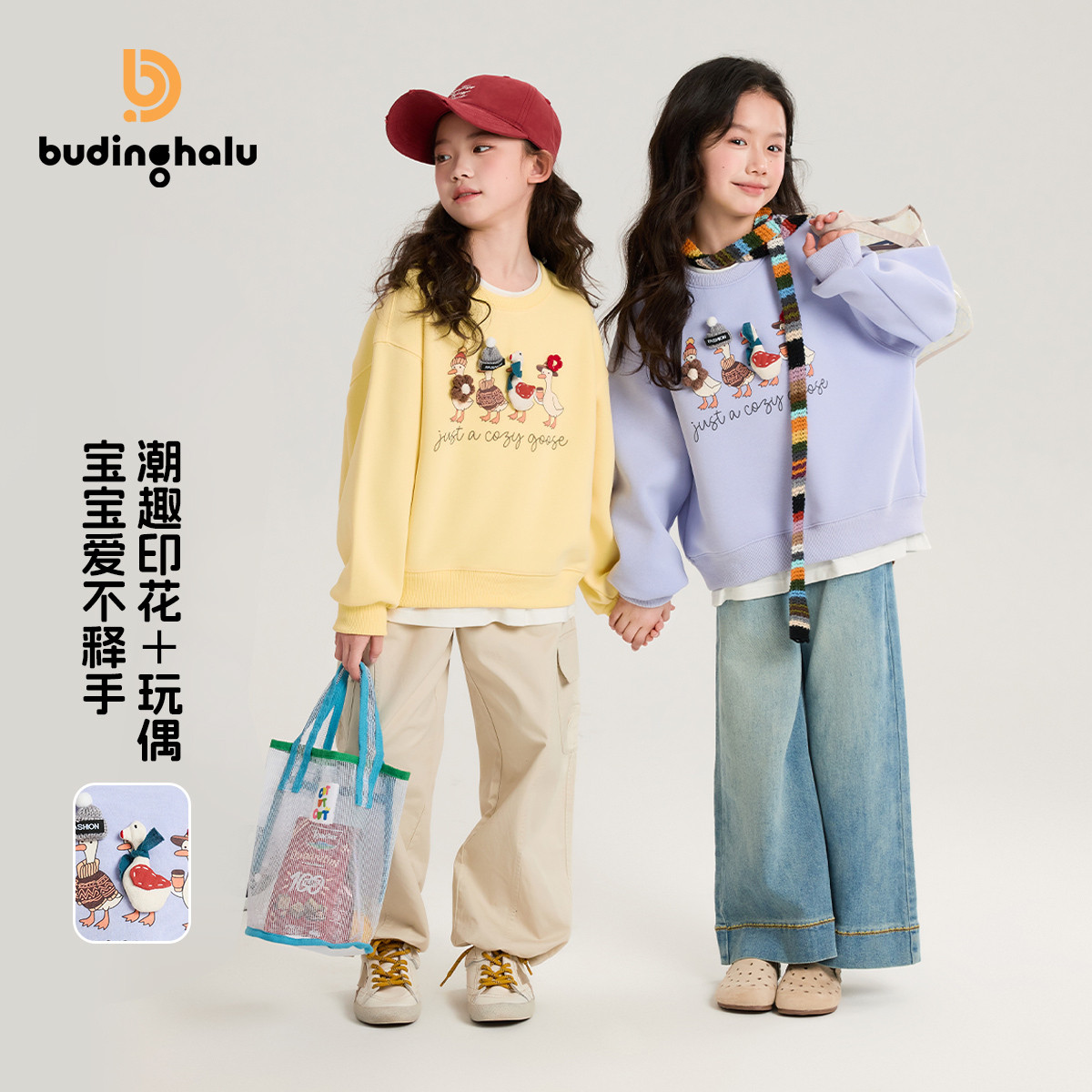 布丁哈鲁春装女童童装休闲上衣2026春季新款儿童公仔假两件卫衣
