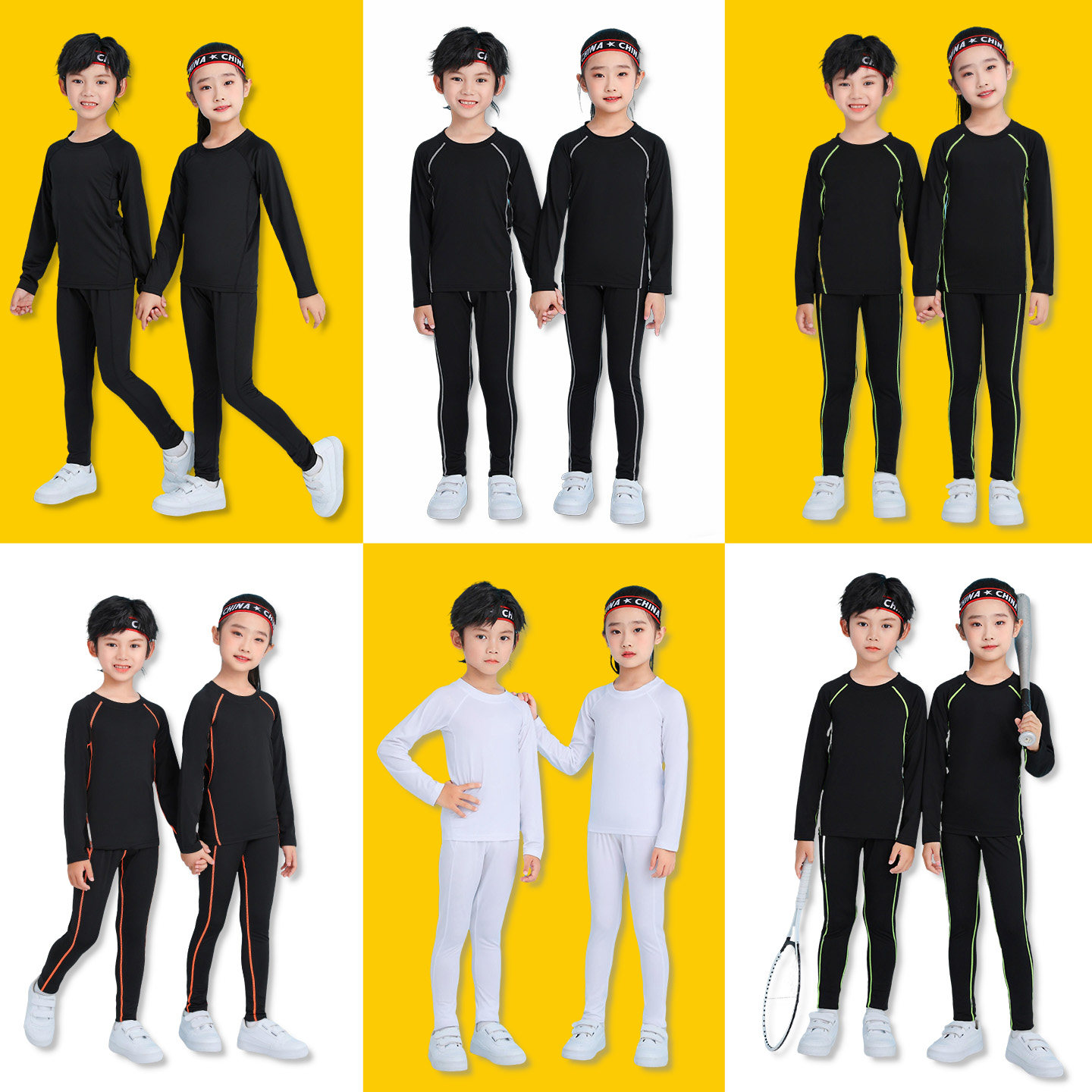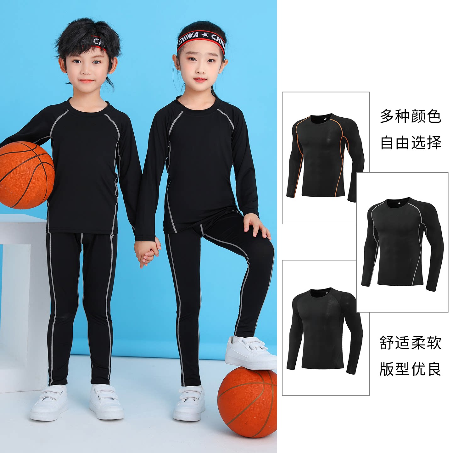 儿童紧身衣套装男童女童篮球训练服运动健身服黑色长袖打底内衣