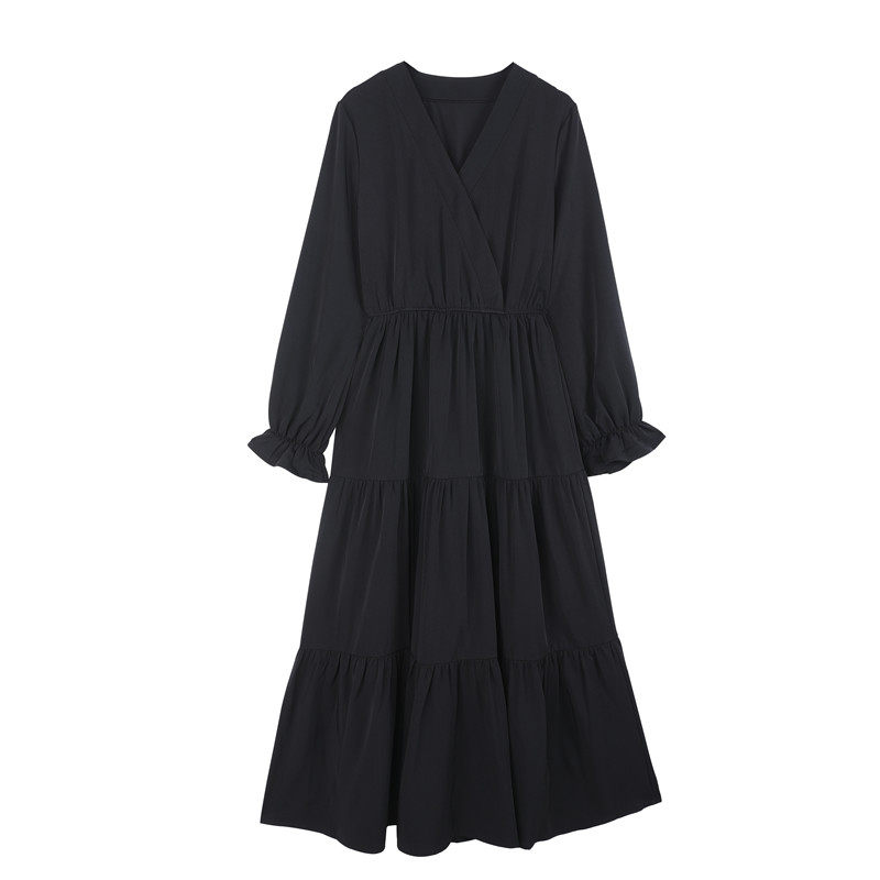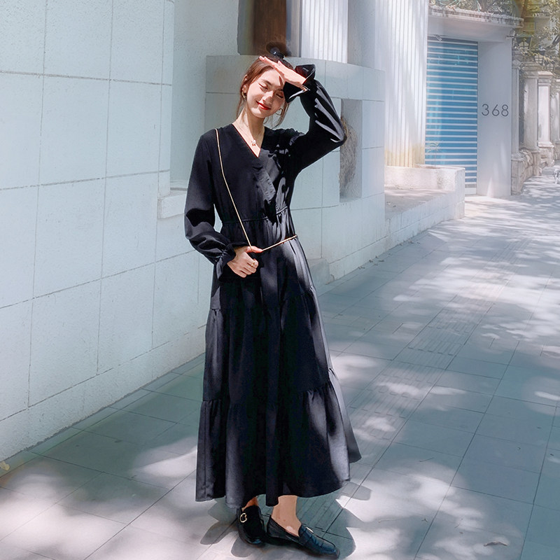 黑色法式2025年春秋新款连衣裙收腰显瘦长款裙子赫本风到脚踝长裙