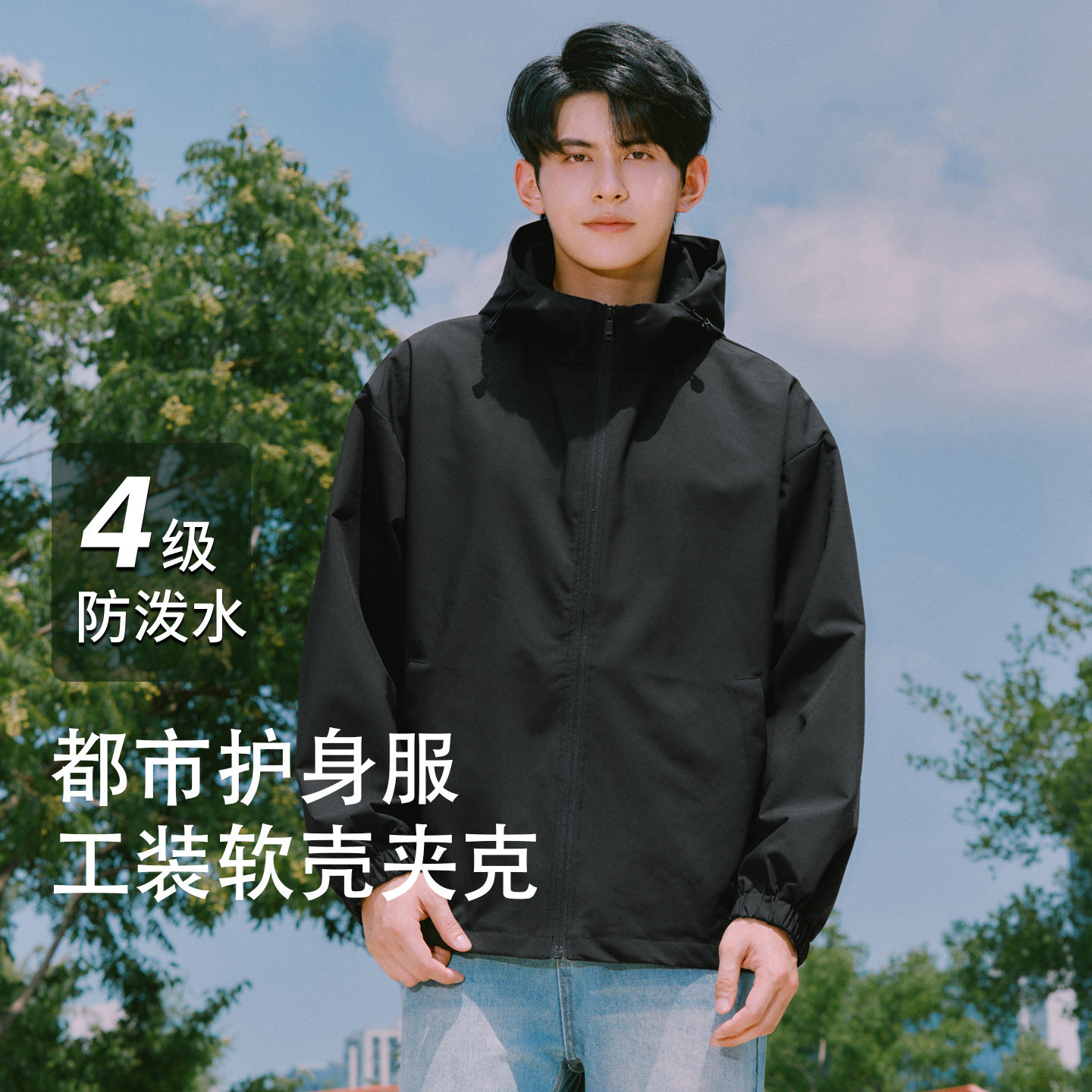 班尼路黑色软壳夹克男款春季户外防风登山服防泼水宽松男士外套A