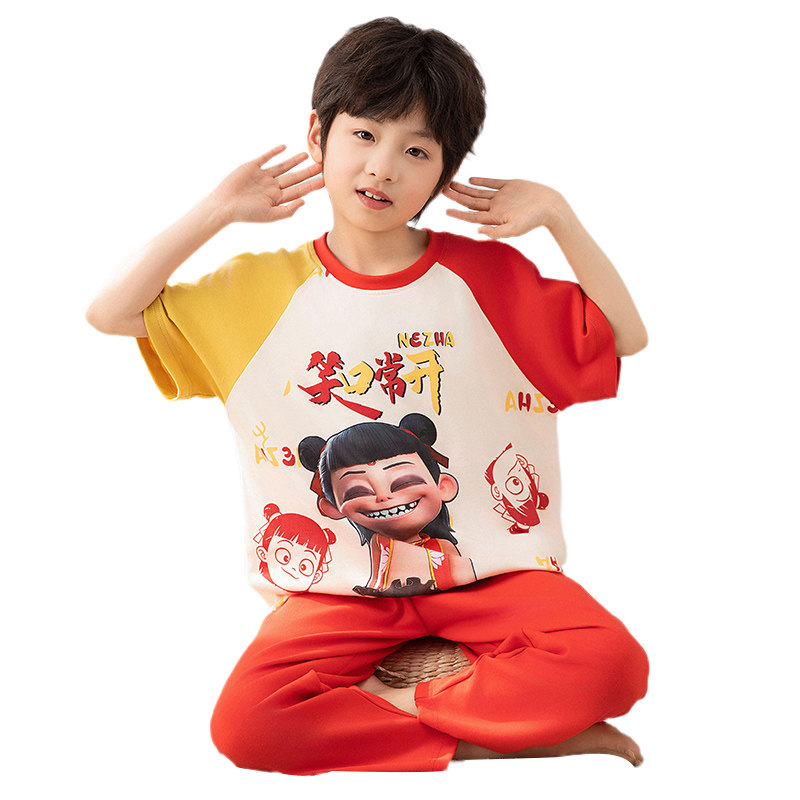 哪吒儿童睡衣男孩短袖长裤纯棉夏季中大男童青少年家居服空调套装