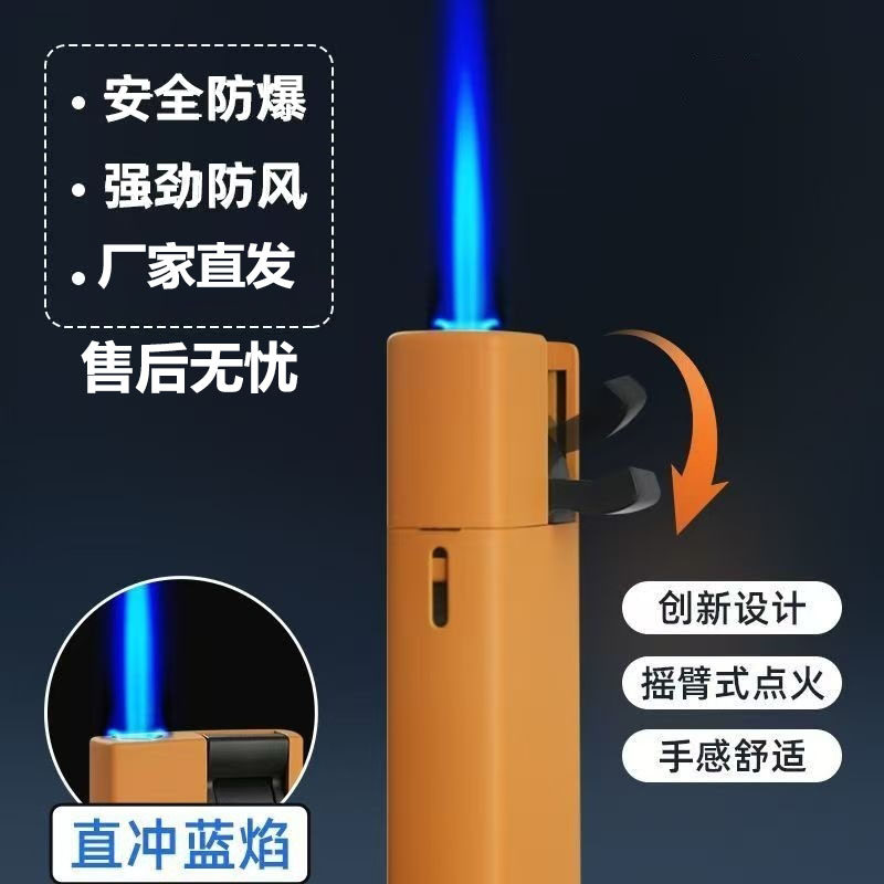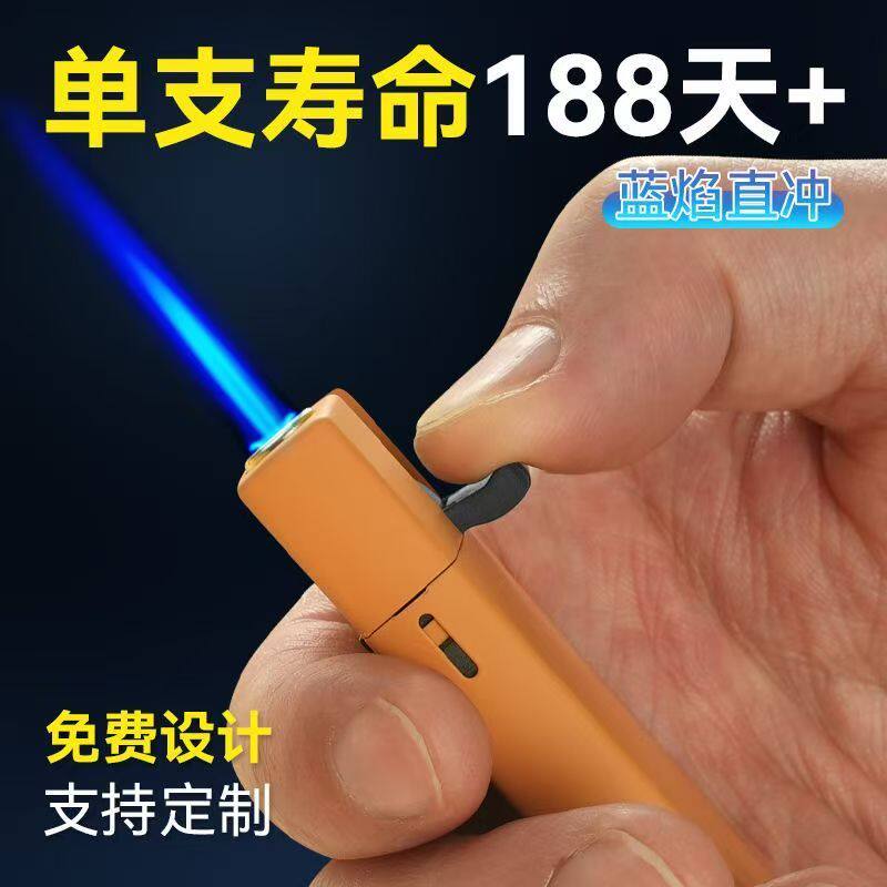 新款下拉式点火金属加厚蓝焰直冲防风打火机批发logo刻字定制磨砂