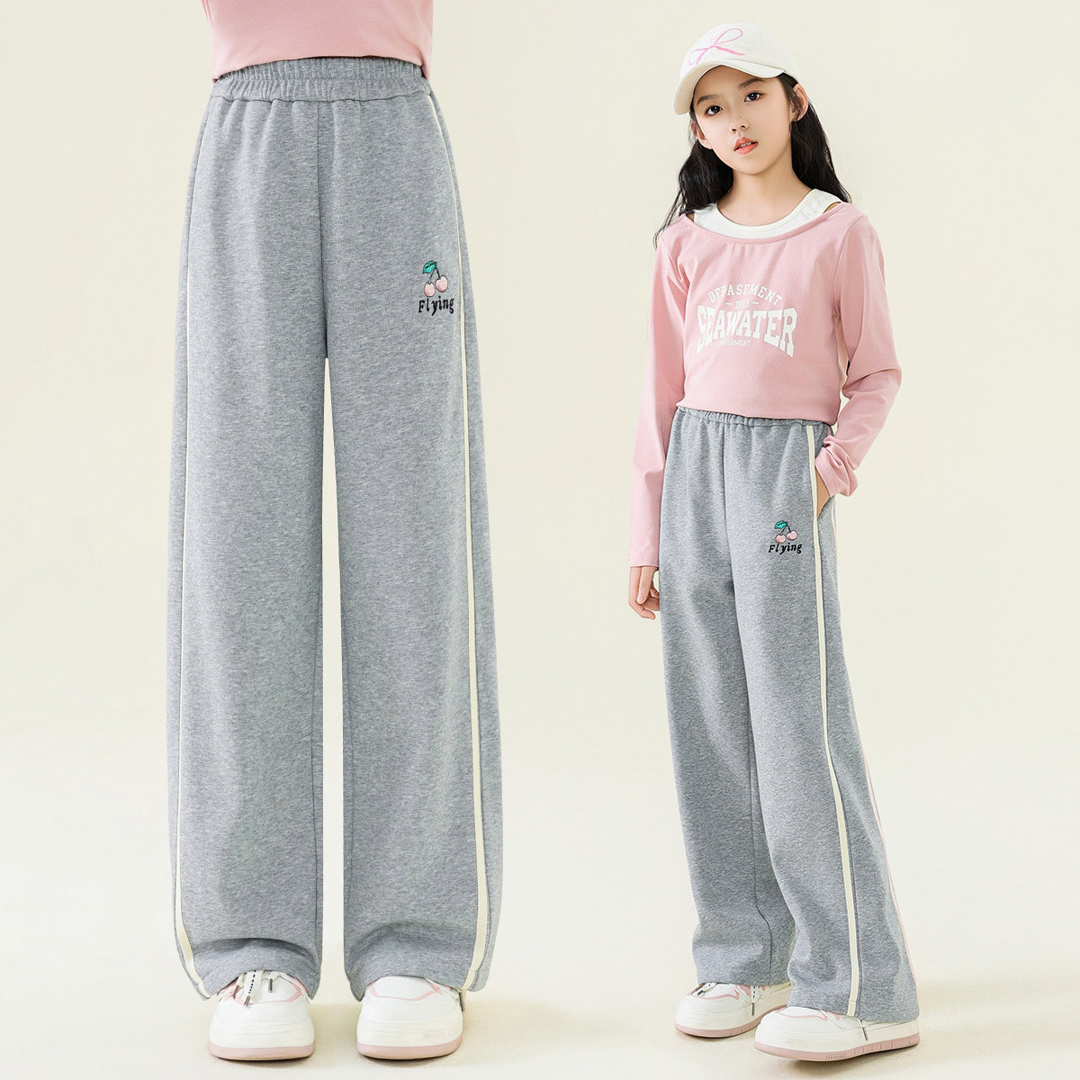 女童裤子春装2026新款儿童运动卫裤洋气中大童春秋宽松加绒阔腿裤