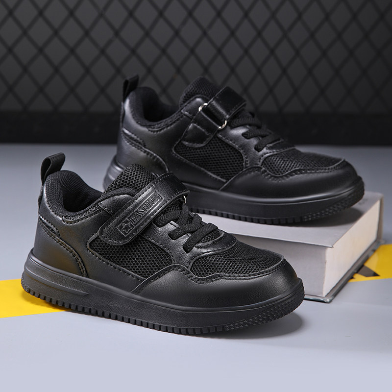 透气儿童网面运动鞋男童鞋子全黑色中大童40码女孩小学生白色板鞋