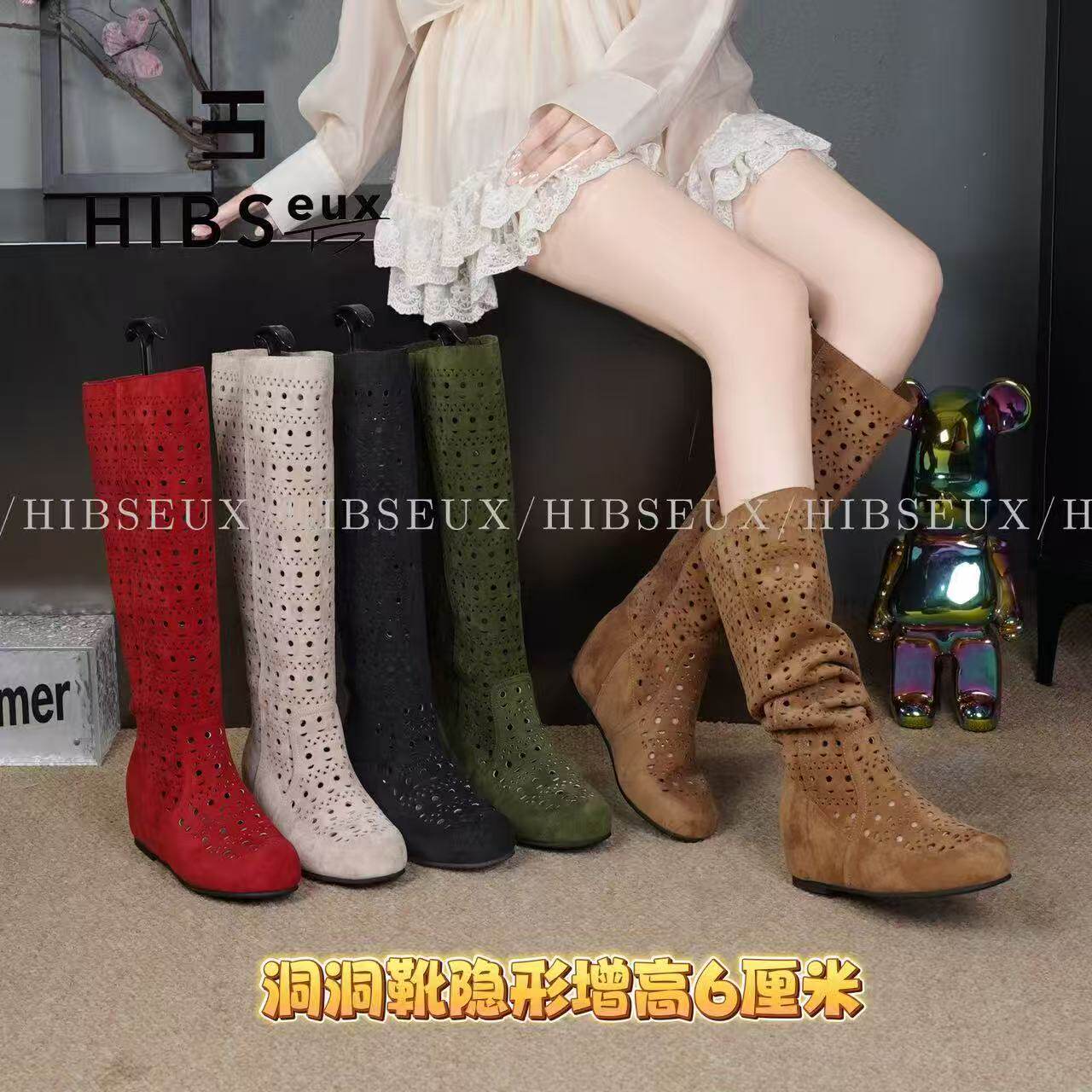 夏天靴子增高6公分旅游穿搭法式透气长靴舒适软底镂空女款长筒靴