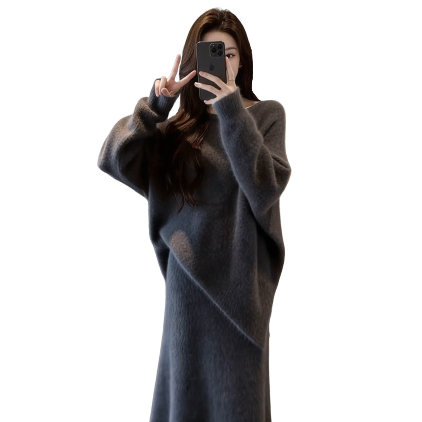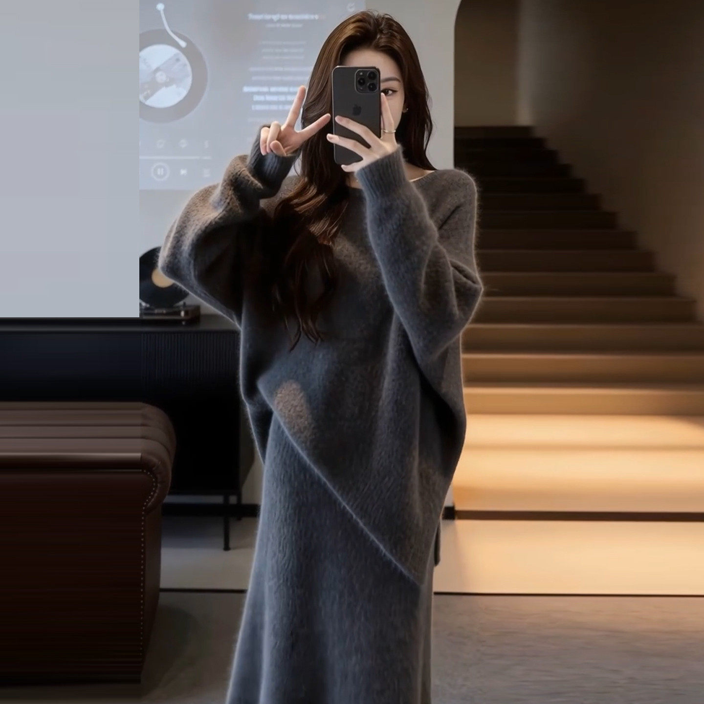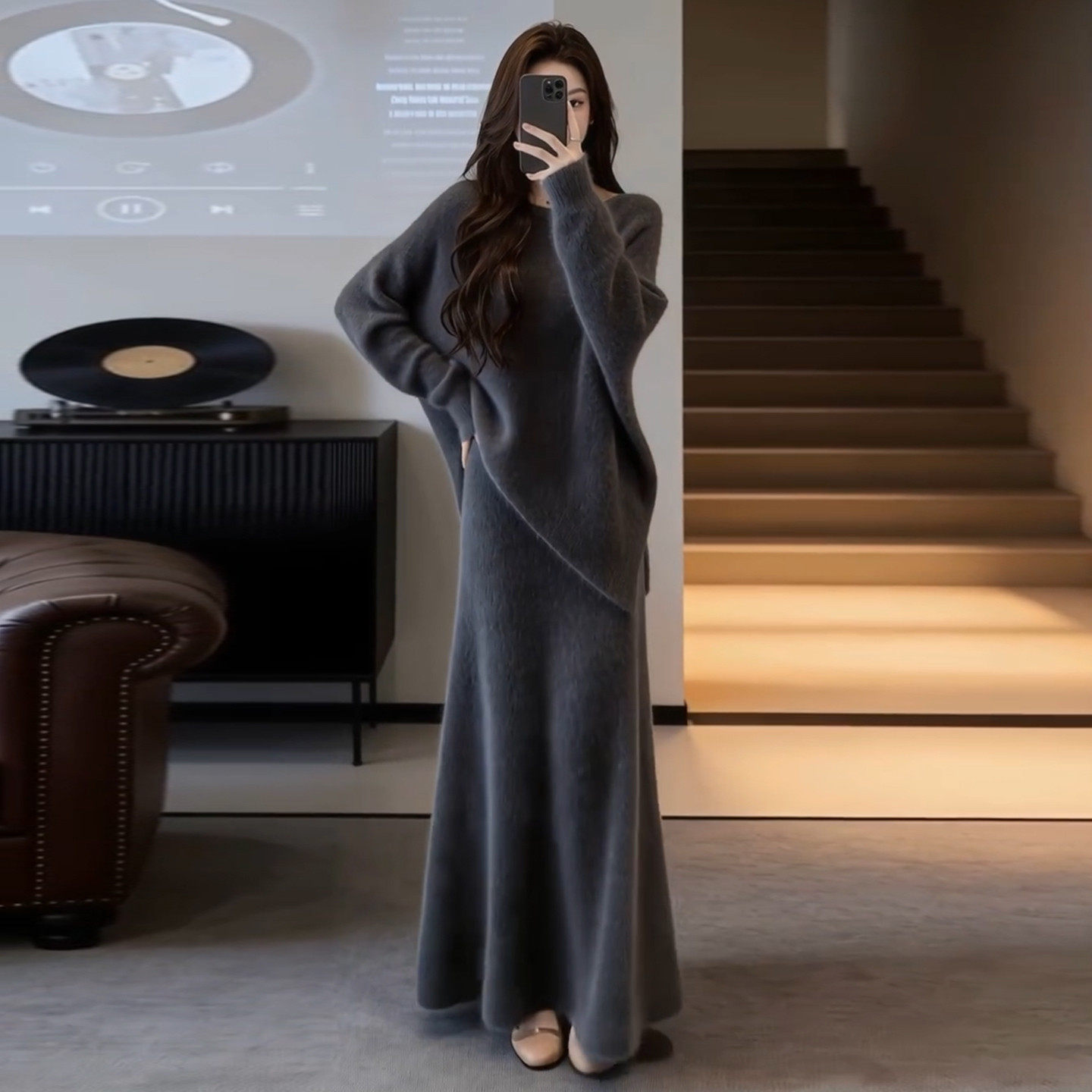 灰色毛衣针织连衣裙子女早春2026新款巨好看韩系穿搭一整套装长裙