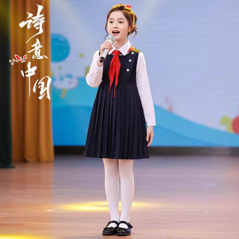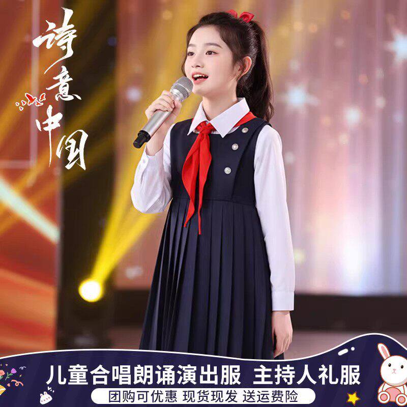 儿童合唱演出服男女童中小学生学院风红领巾朗诵比赛主持人礼服装