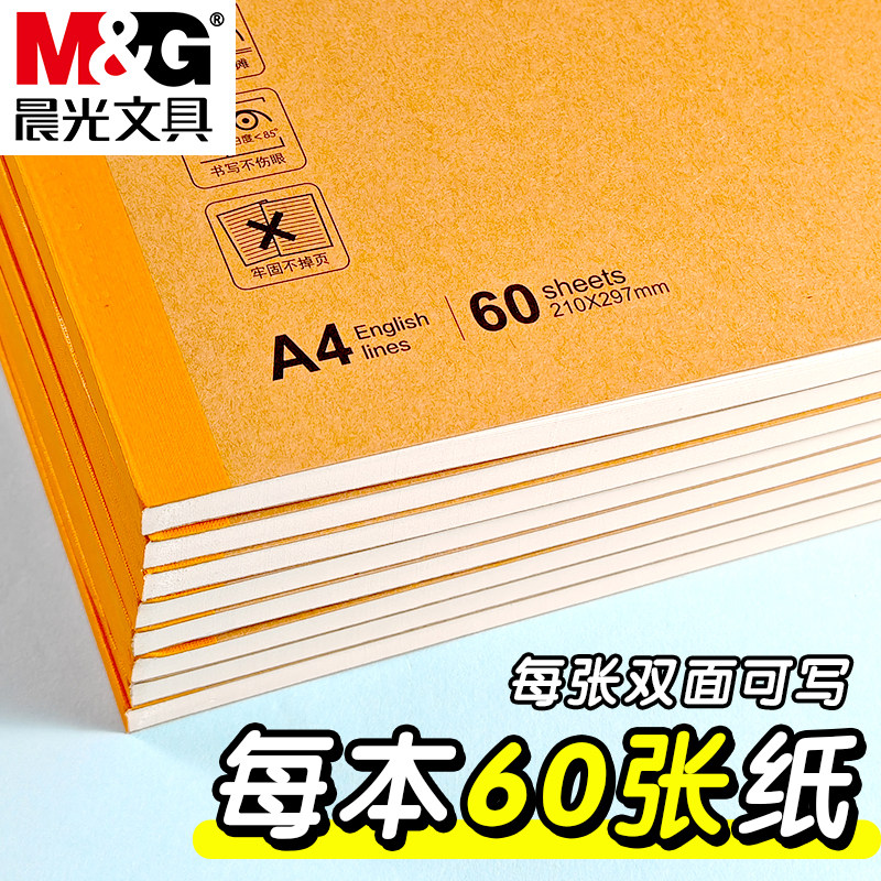 晨光本味A4英语本小学生用英语作业本加厚四线三格英语单词抄写本牛皮纸初中生用英文听写本简约无线装订本