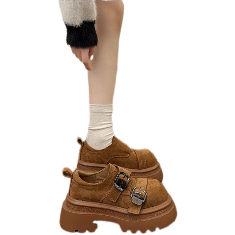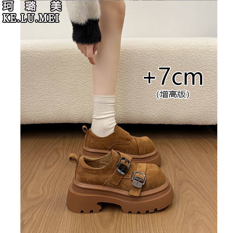 百搭松糕底厚底勃肯鞋女2026新款冬黑色双扣带增高百搭小个子单鞋