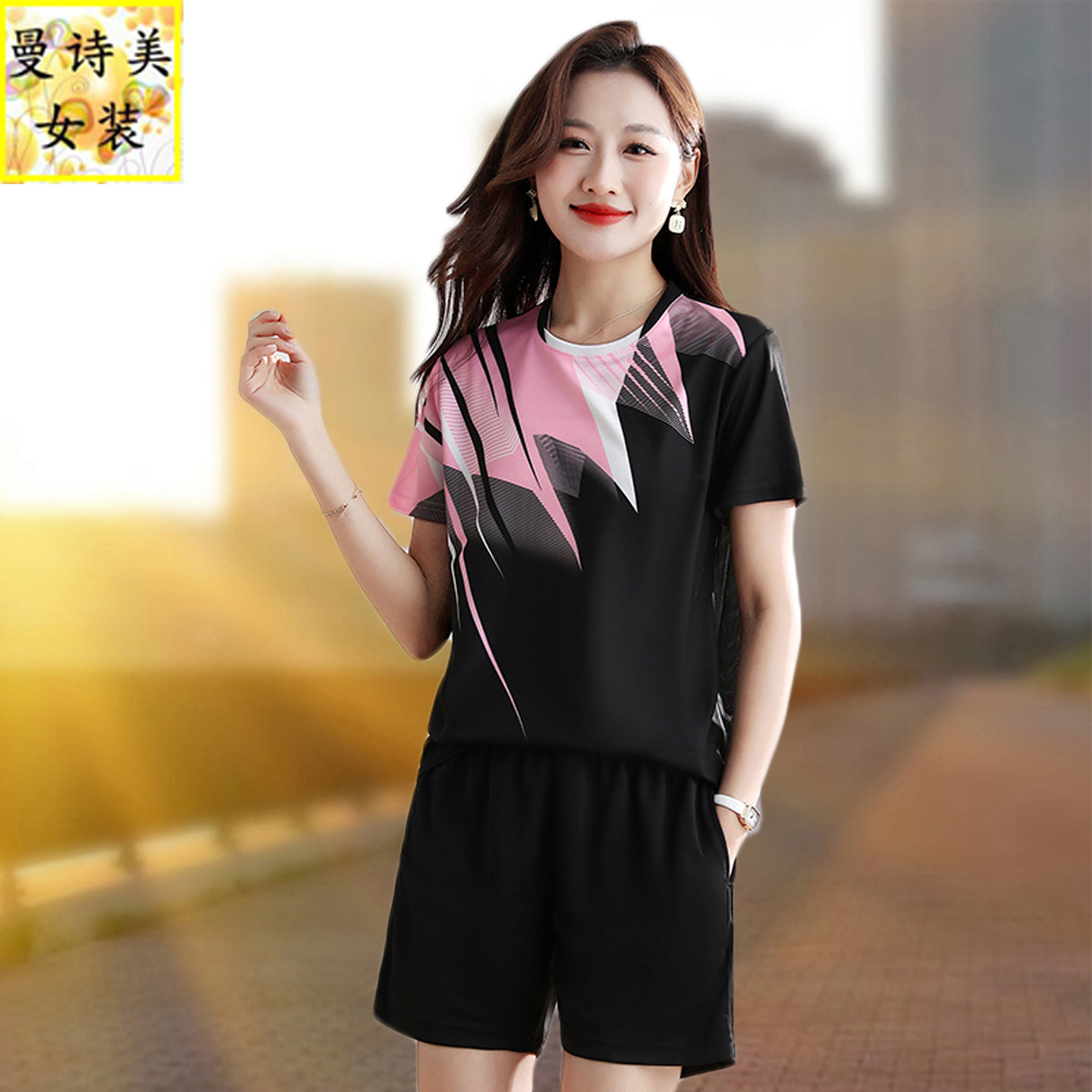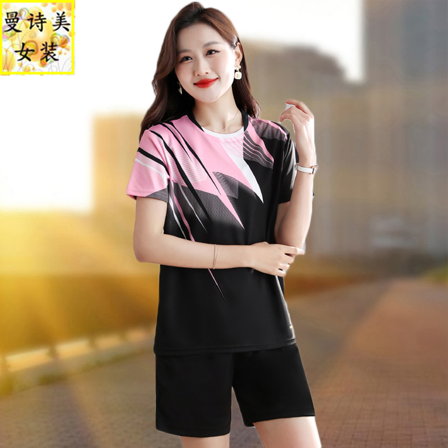 夏季短袖短裤运动套装女2026新款冰丝速干跑步羽毛球服网球两件套