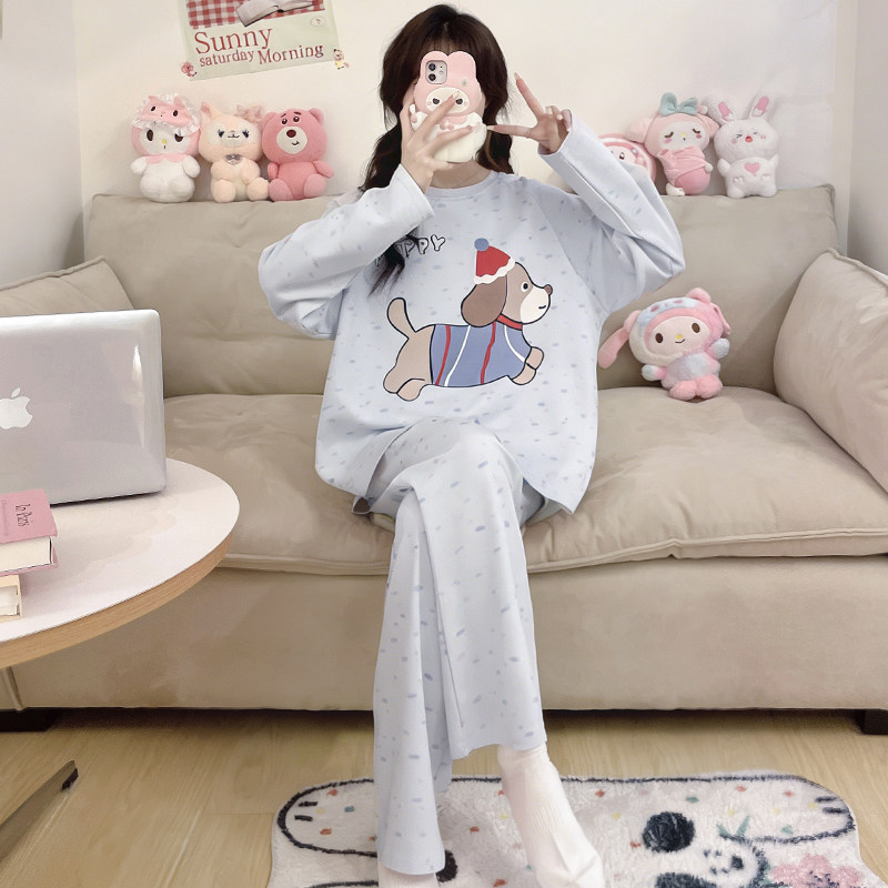 长袖睡衣女可外穿春装2026新款腊肠狗衣服休闲套装纯棉家居服女款