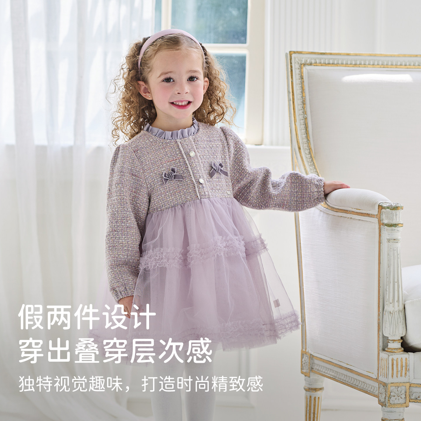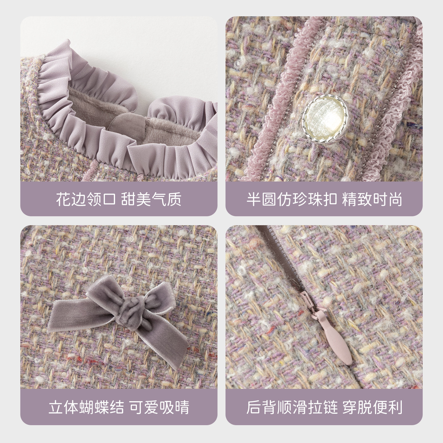 戴维贝拉女童加绒连衣裙2026冬装新款儿童小香风公主裙宝宝裙子