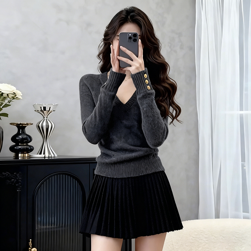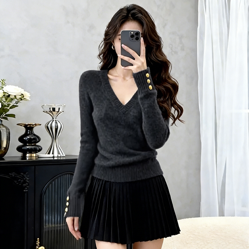 红色毛衣女款爆款2026新款洋气打底衫女内搭春秋百搭V领针织衫女