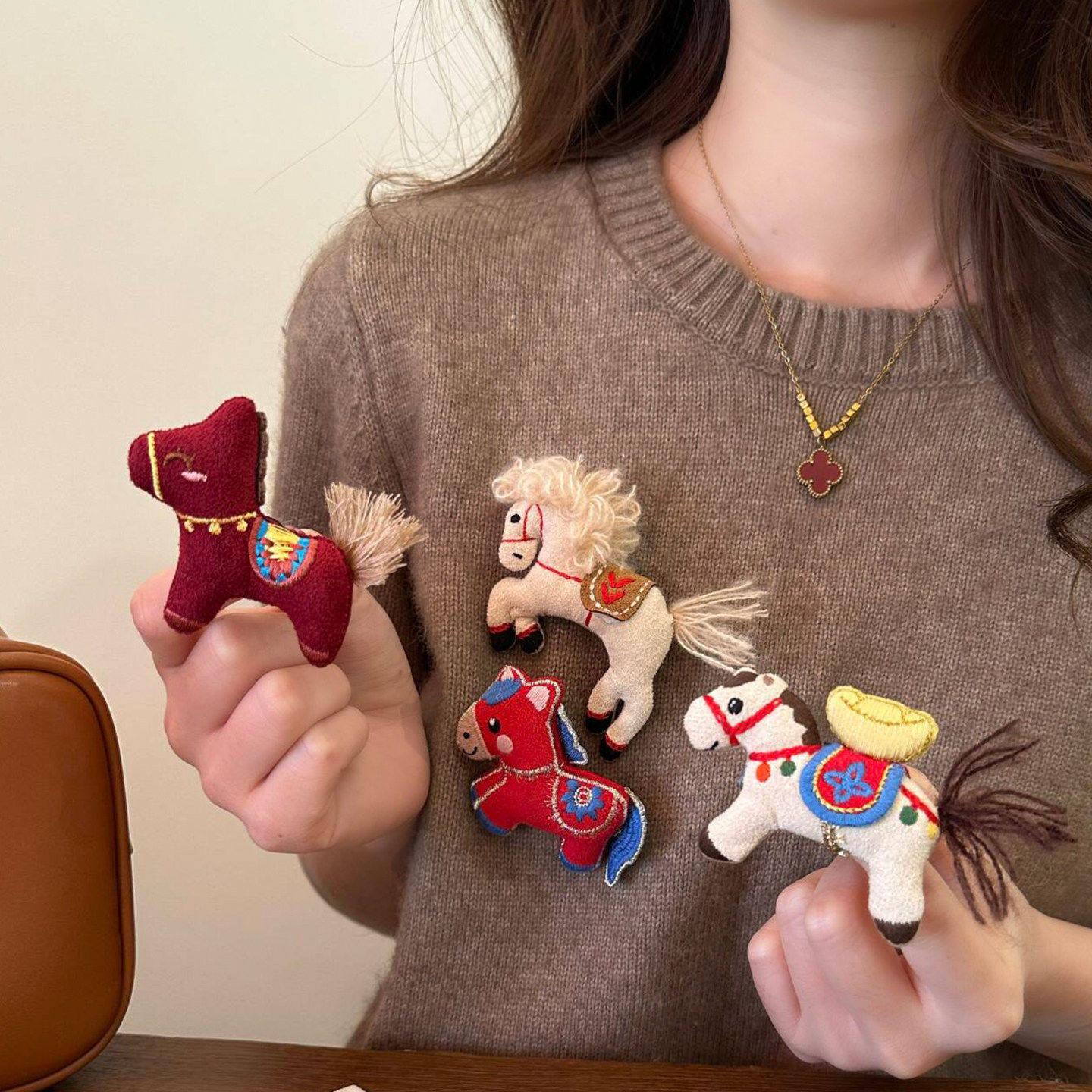 本命年可爱布艺小马胸针女款2026新款毛衣配饰胸花新年儿童饰品冬