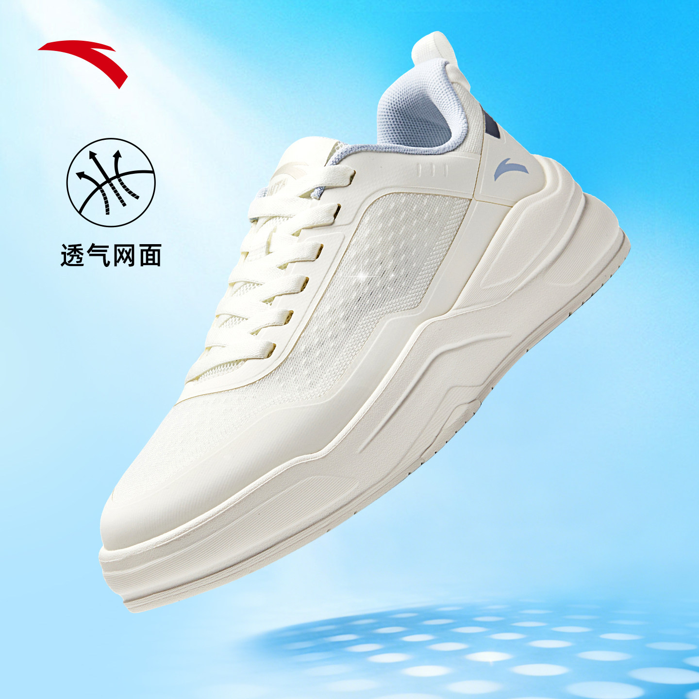 安踏板鞋男鞋夏季2026新款增高厚底小白鞋轻便网面透气运动鞋子男
