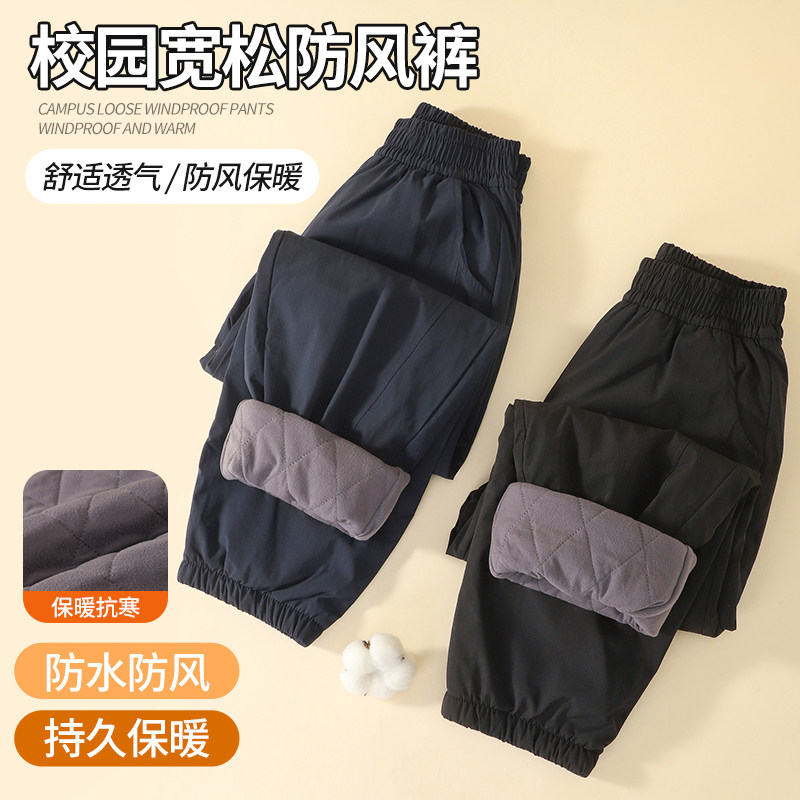 男女童防风裤加绒加厚运动裤子青少年2025新款儿童卫裤秋冬季长裤