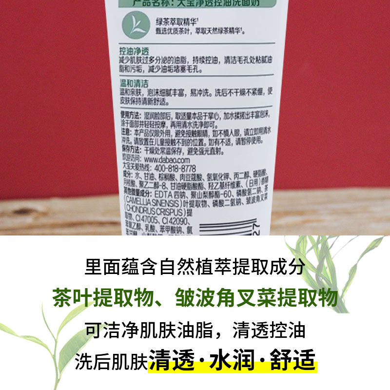 大宝净透绿茶控油洗面奶100g女男士清爽滋润补水保湿洁面官方正品
