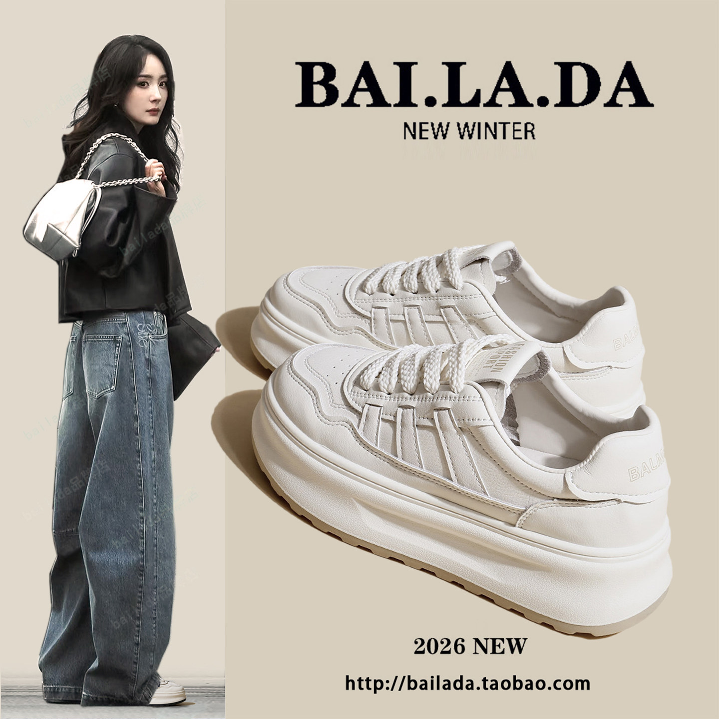 爆款超火厚底小白女鞋女款2026春季新款百搭巨好看休闲增高板鞋子