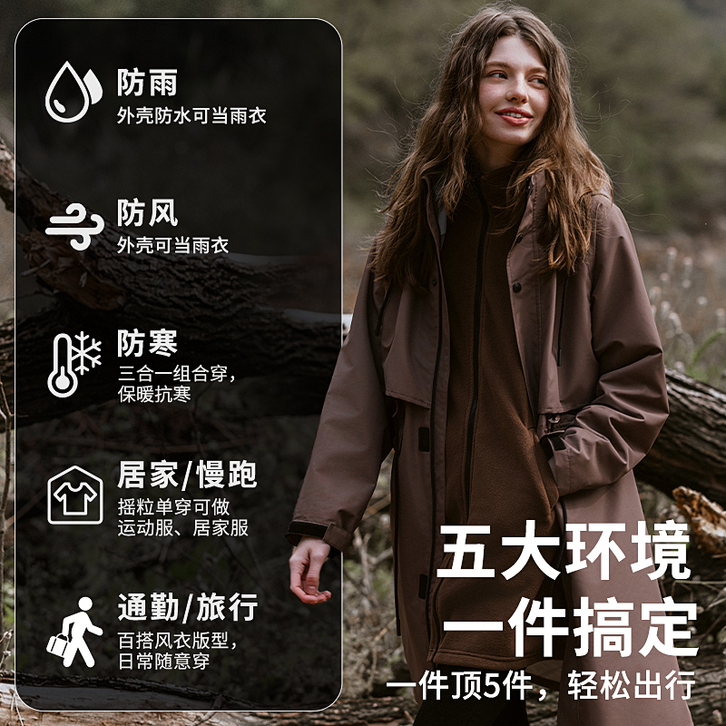 冲锋衣女款三合一春秋2026新款户外中长款徒步时尚防水冲锋衣外套