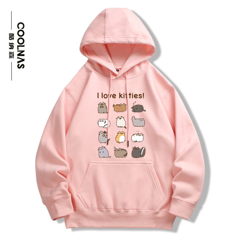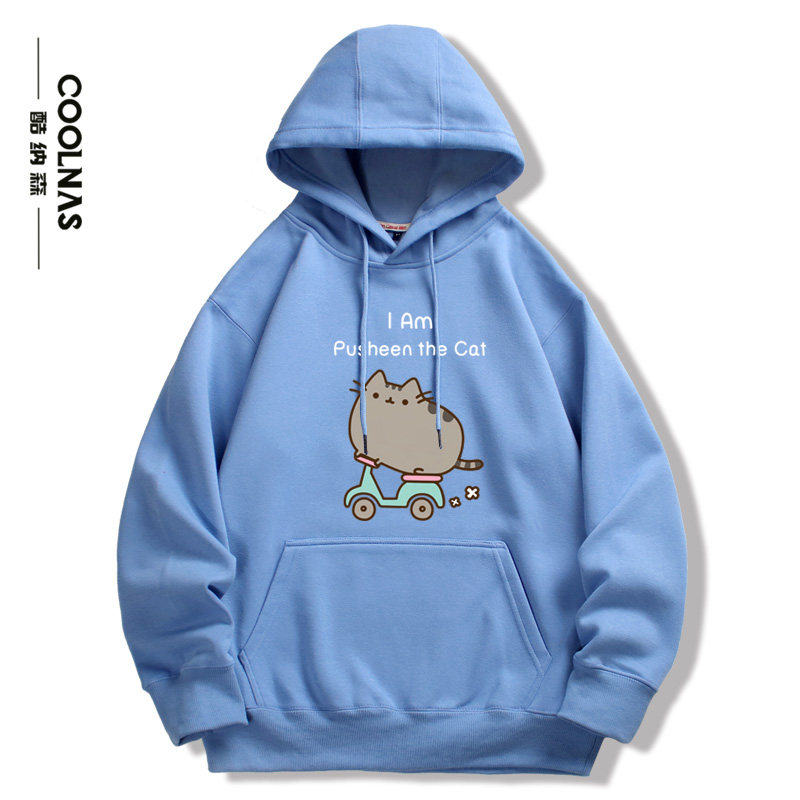 Pusheen胖吉猫可爱周边连帽卫衣男女青少年春秋薄款宽松帽衫外套