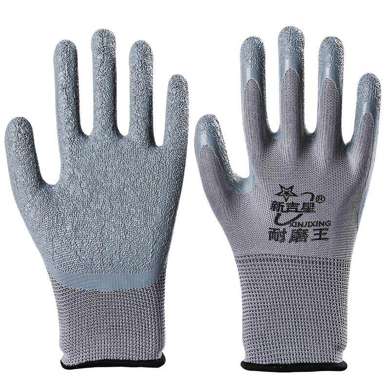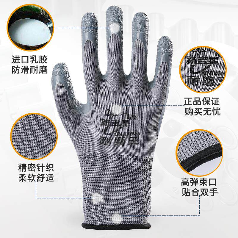 24款新吉星手套劳保耐磨王工作干活带胶皮防滑加厚皱纹浸挂橡胶手