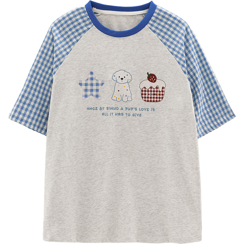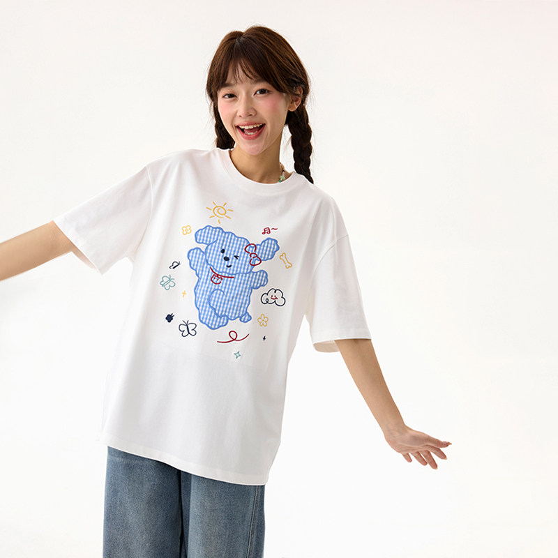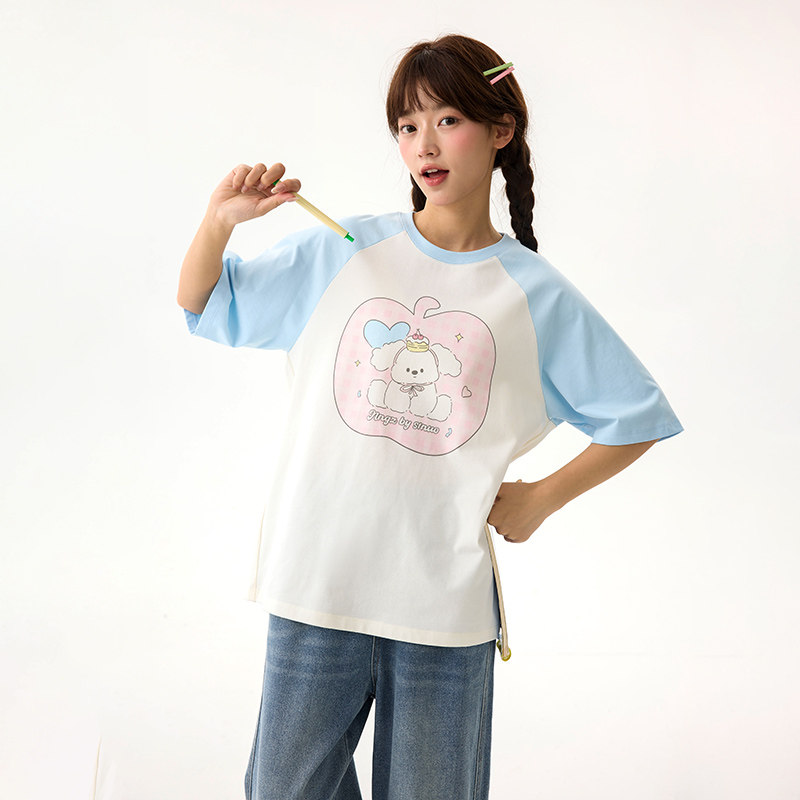 诺诺公主S1N初中生圆领宽松休闲T恤女卡通印花短袖夏季学院风上衣