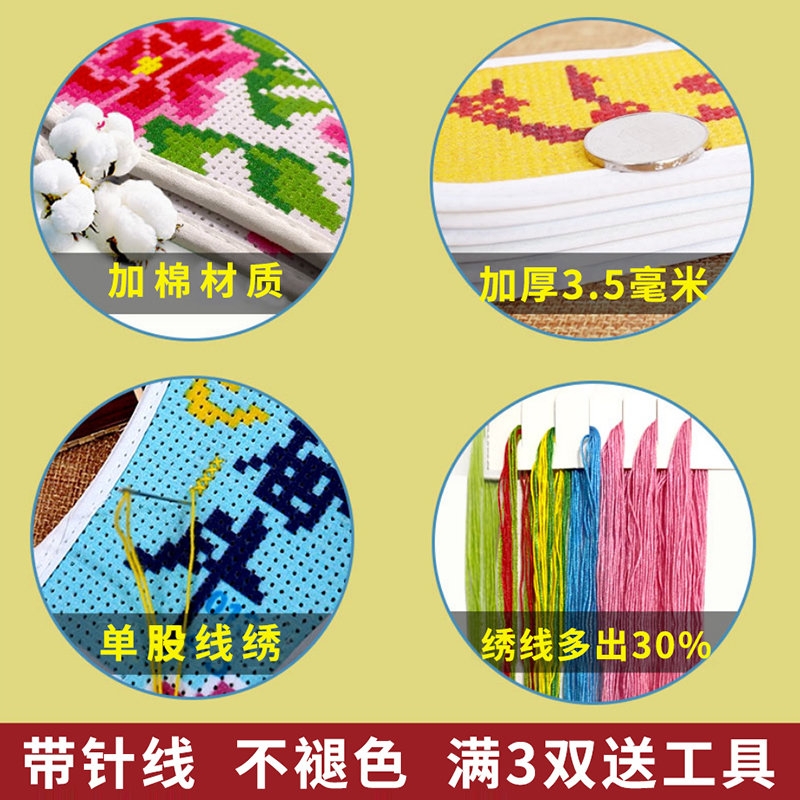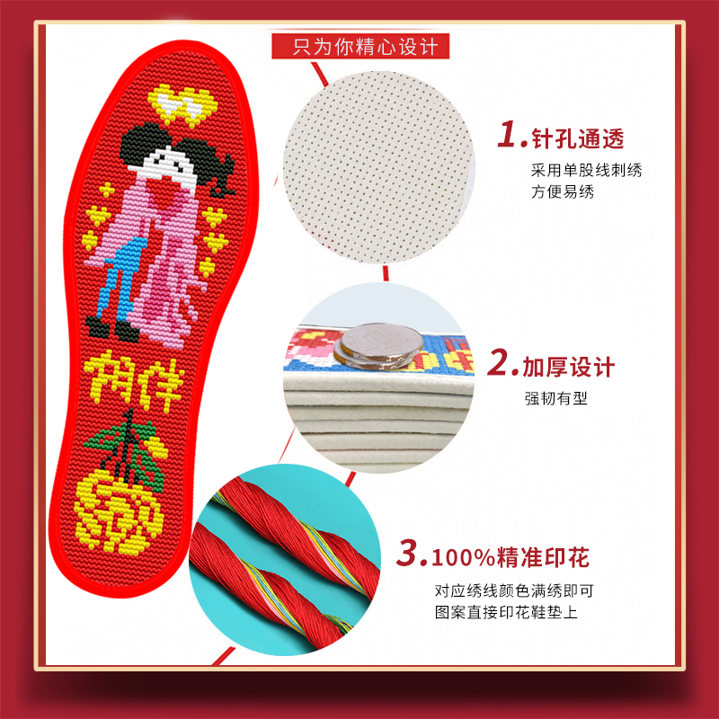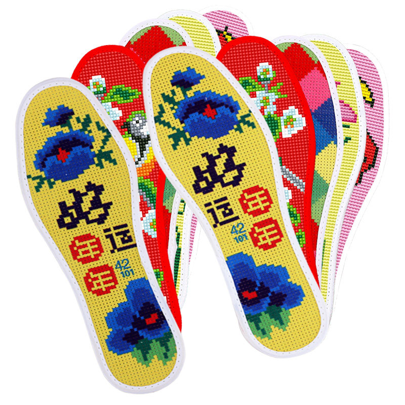 2026年新款十字绣鞋垫自己绣半成品男女纯手工防臭吸汗刺绣红底色