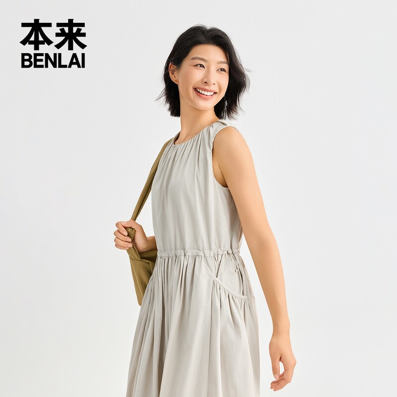 本来BENLAI女士凉感无袖背心裙收腰连衣裙2026春季新款BNT760001