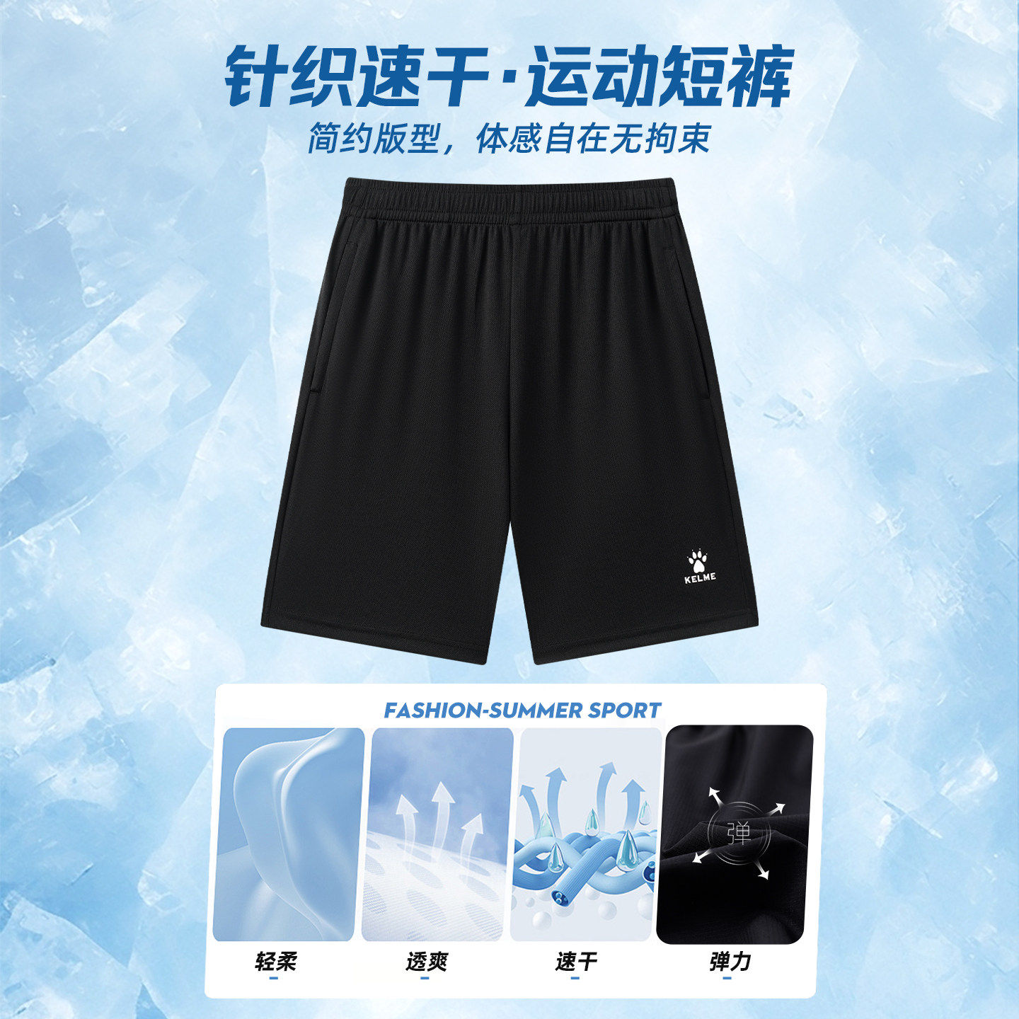 KELME卡尔美运动短裤夏季男跑步健身速干裤儿童足球篮球训练裤子