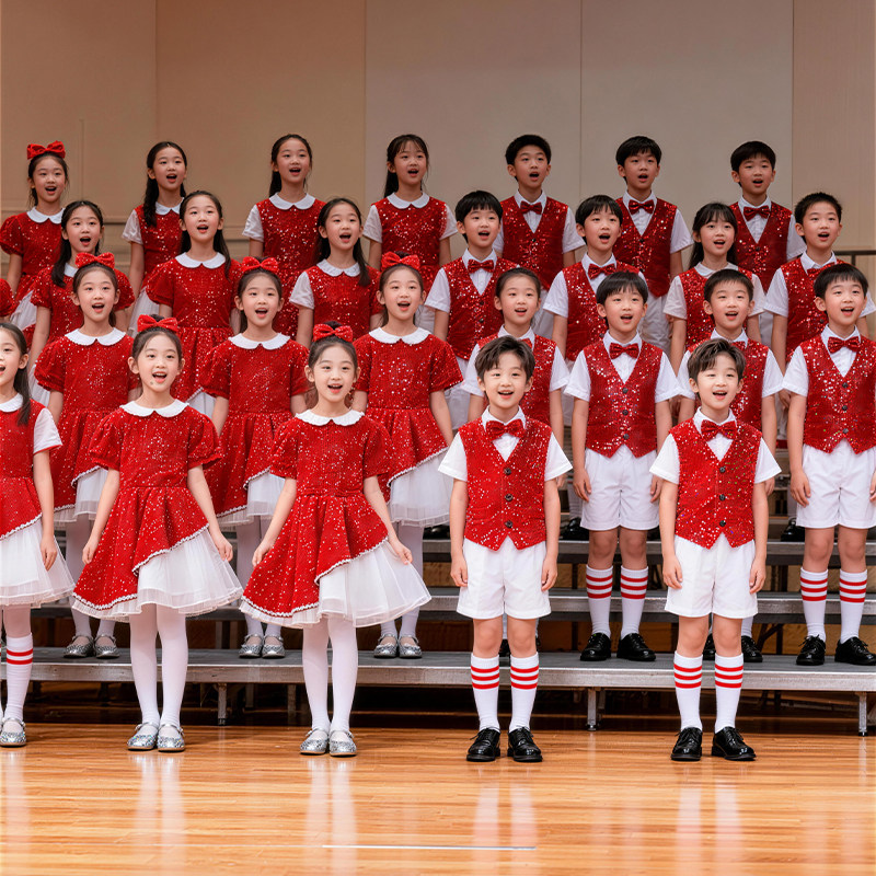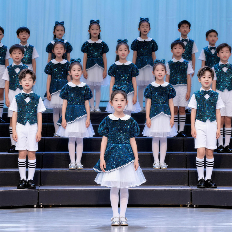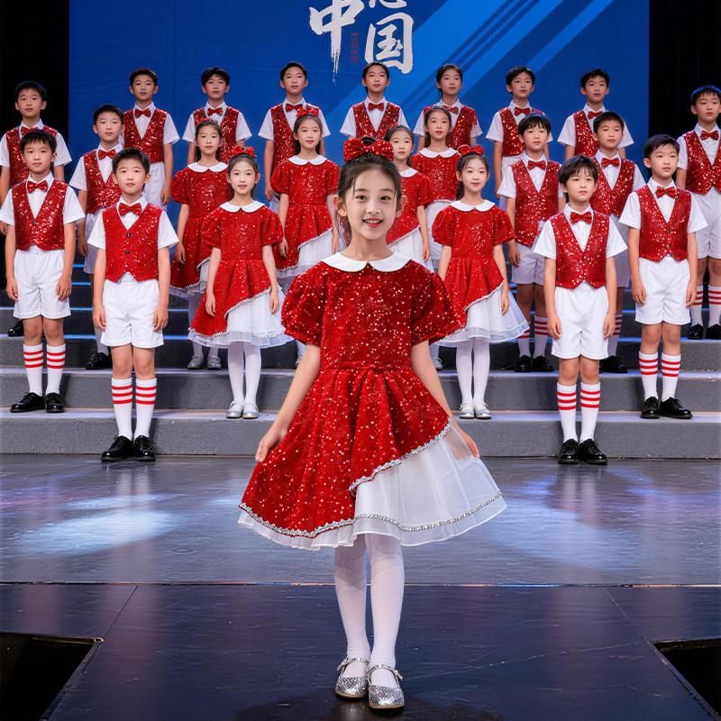 六一儿童合唱演出服男女童亮片诗歌朗诵比赛服装小学生红歌演出服