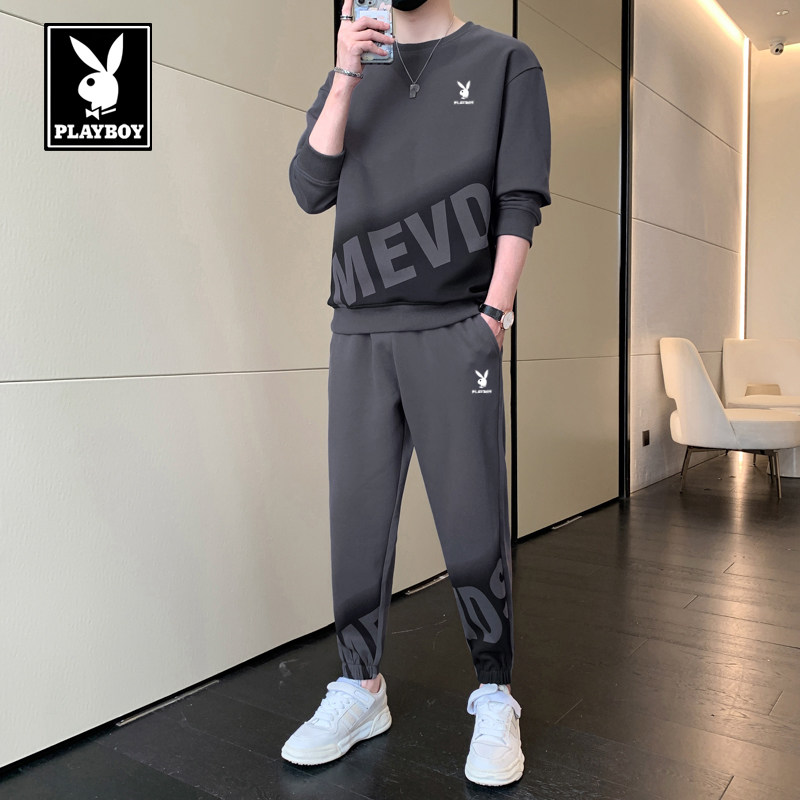 花花公子运动套装男春秋季长袖长裤两件套跑步休闲宽松大码一整套