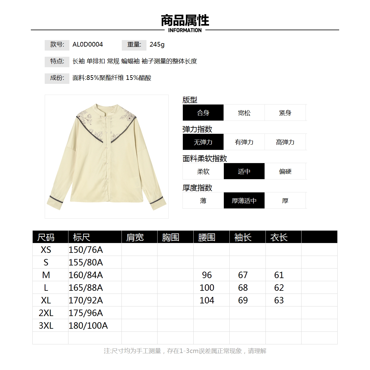 2026年春Outlets正品 高端AL系列知性上衣蝙蝠袖轻量新中式衬衫女