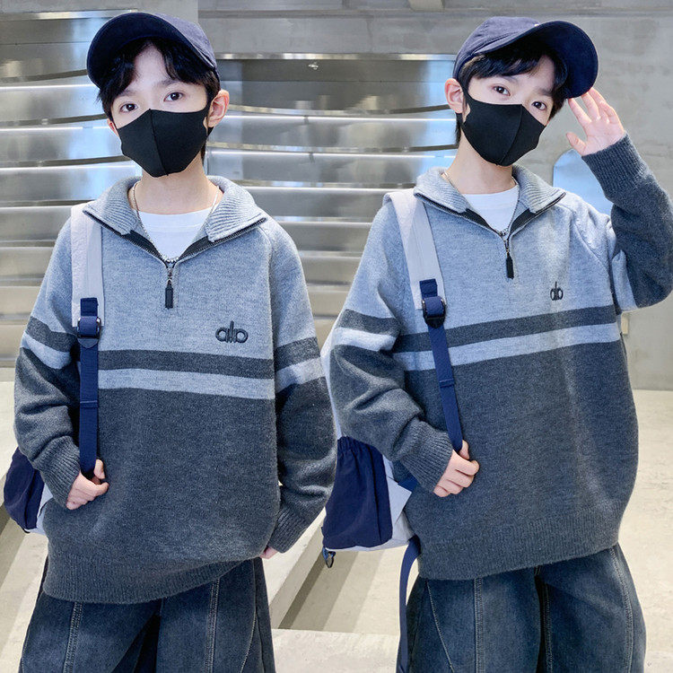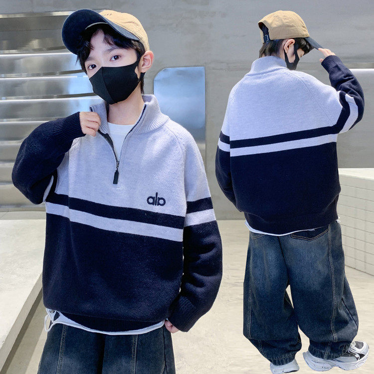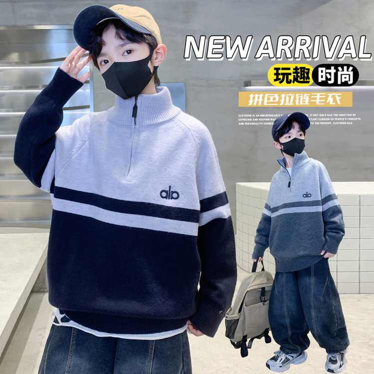 2026新款秋冬儿童拼色拉链毛衣男女童时尚保暖上衣潮款外套
