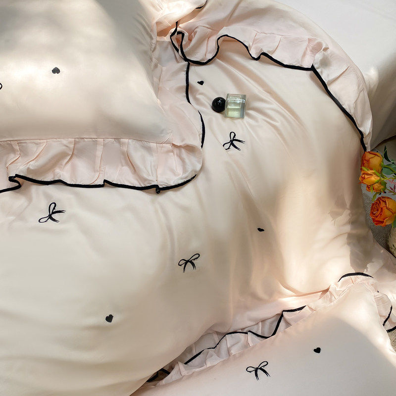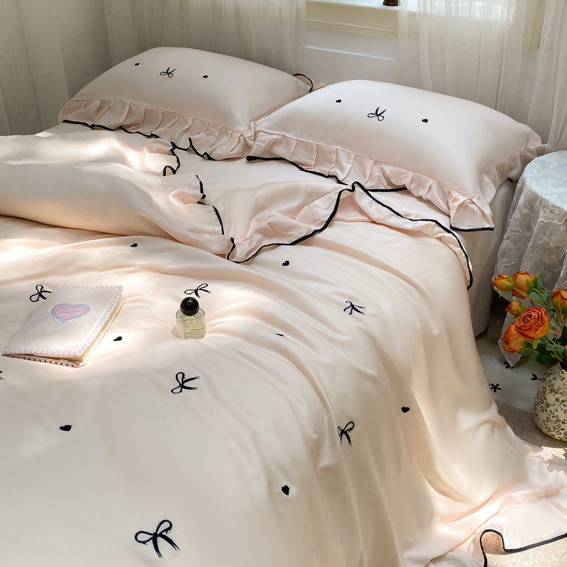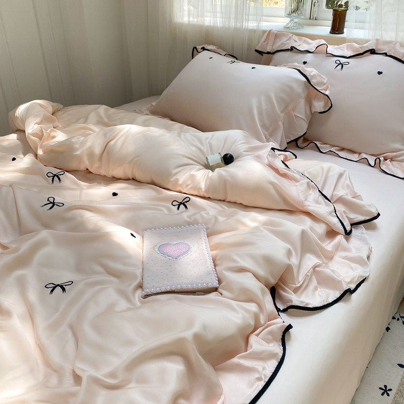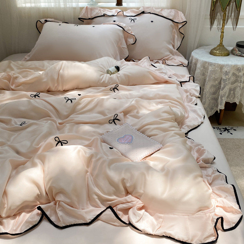 公主风凉感水洗真丝冰丝四件套床上用品夏季床单被套宿舍三件套