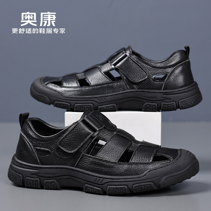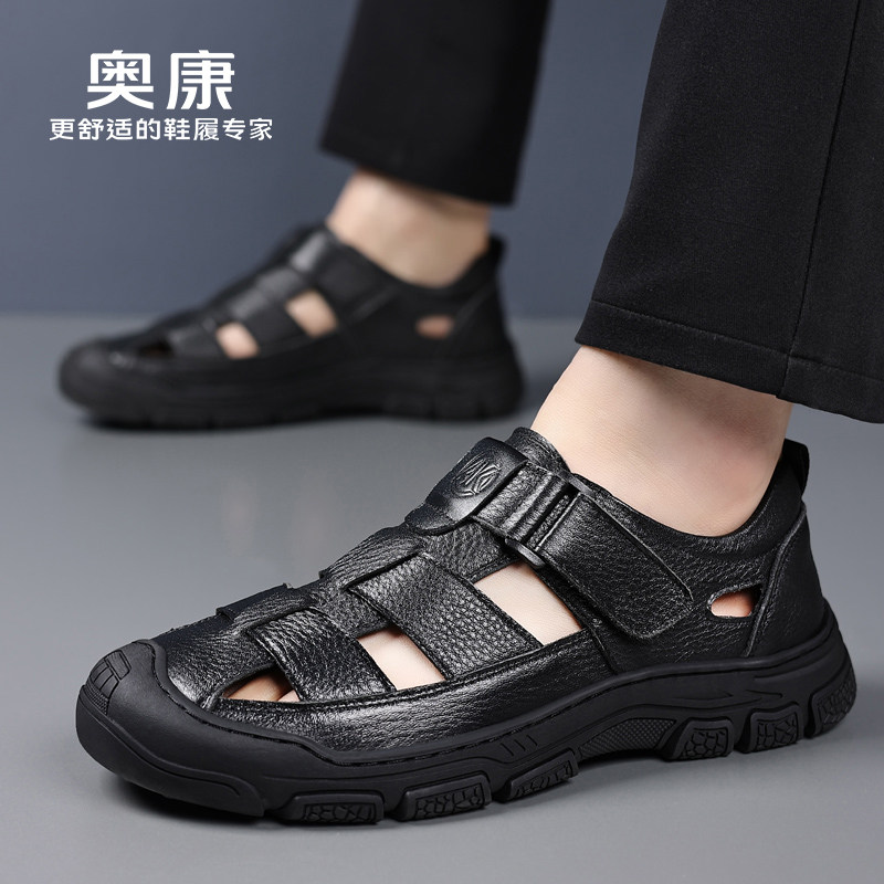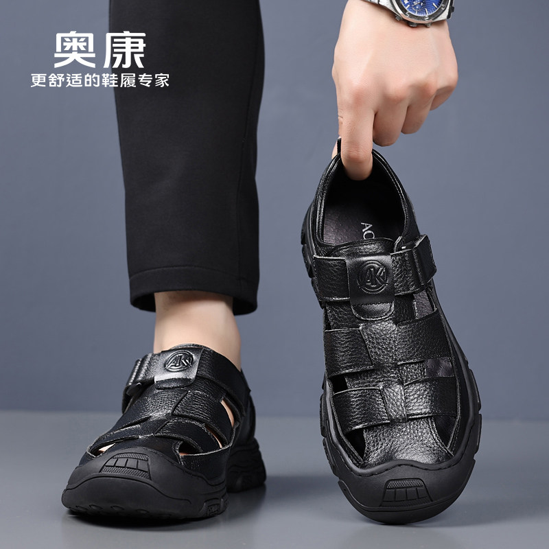 奥康凉鞋男款夏季2026新款真皮透气镂空洞洞鞋休闲防滑沙滩鞋男士