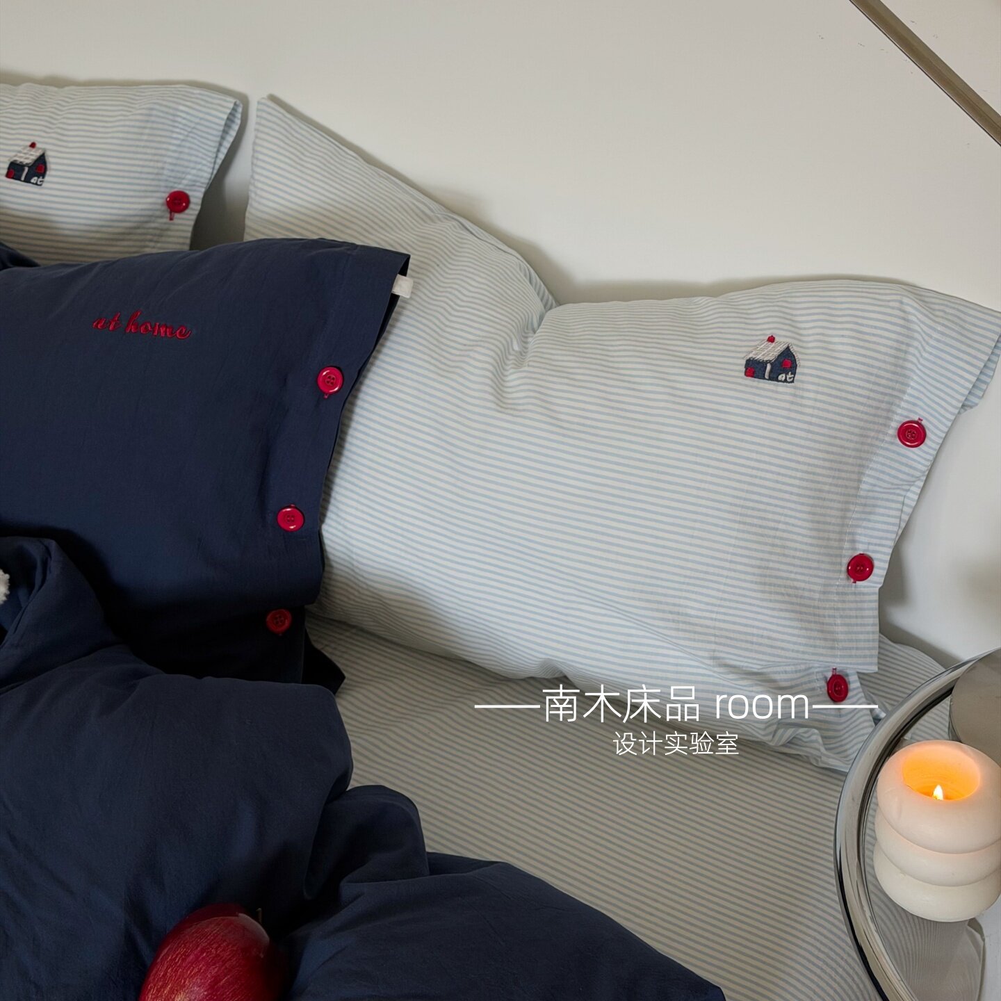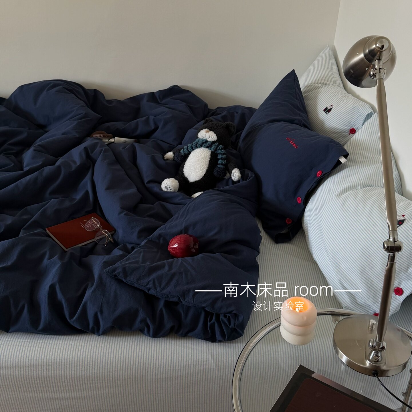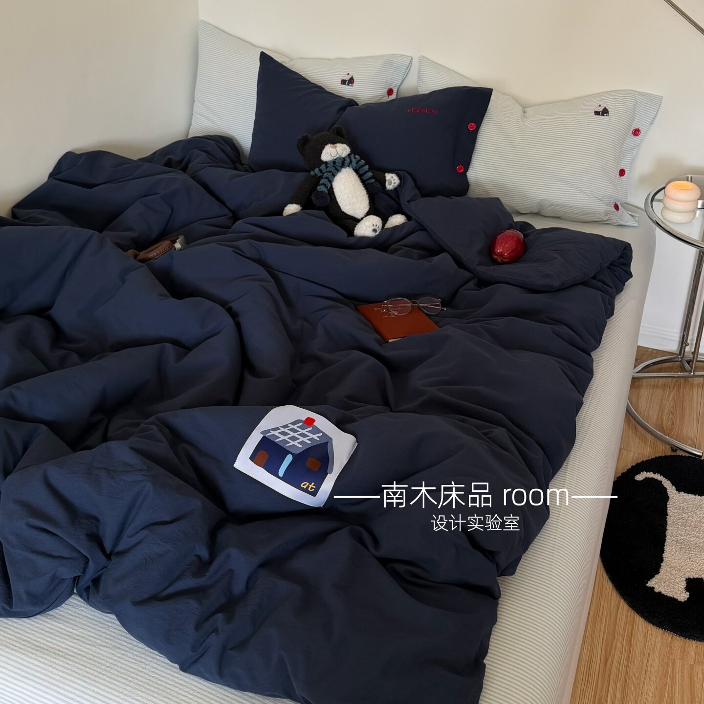 沉浸深海|ins治愈深蓝混搭全棉水洗棉四件套1.8床笠纯棉男生床品